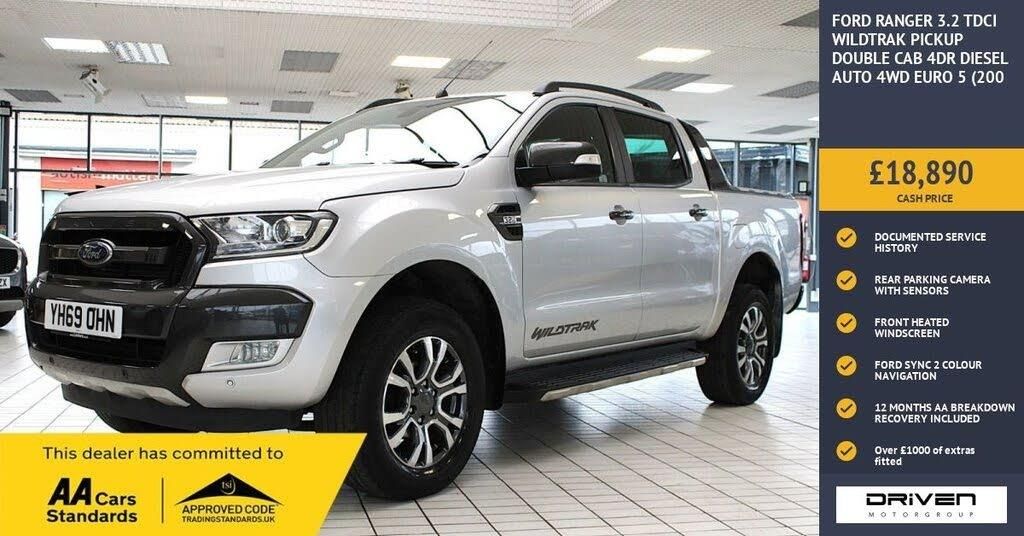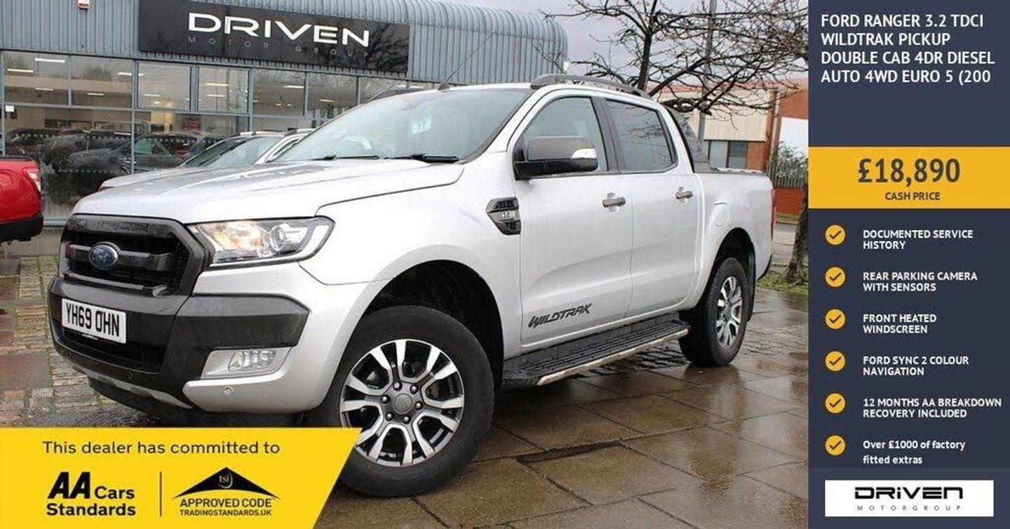FORD RANGER 3.2 TDCI WILDTRAK PICKUP DOUBLE CAB 4DR DIESEL AUTO 4WD FINISHED IN MOONDUST SILVER AND COMPLIMENTED WITH BLACK LEATHER INTERIOR, THIS VEHICLE HAS BEEN VERY WELL CARED FOR AND MAINTAINED WITH DOCUMENTED SERVICE HISTORY PLUS COMPREHENSIVE PRE DELIVERY HEALTH CHECK AND SERVICE COMPLETED PRIOR TO SALE AT 75460 MILES. KEY FEATURES INCLUDE UPGRADED ELECTRIC ROLLER SHUTTER, OTHER KEY FEATURES INCLUDE ALLOY WHEELS, DUALZONE CLIMATE CONTROL, AUTO DIMMING REAR VIEW MIRROR, BLUETOOTH, HANDSFREE, CRUISE CONTROL WITH SPEED LIMITER, DAB RADIO. FORD SYNC 2, HEATED WINDSCREEN, MOBILE WIFI HOTSPOT CAPABLE, REAR PARKING SENSORS WITH REAR CAMERA, POWER FOLDING DOOR MIRRORS, RADIO CD, SATALLITE NAVIGATION, HEATED FRONT SEATS, SIDE STEPS, MULTIFUNCTIONAL STEERING WHEEL, WILDTRAK STYLING, USB CONNECTOR, VOICE CONTROL PLUS MUCH MORE. COMMITTED TO AA CARS STANDARDS: 3 MONTHS OR 3000 MILES WARRANTY INCLUDED WITH AN OPTION TO UPGRADE: 12 MONTHS AA BREAKDOWN RECOVERY INCLUDED: £75.00 CONTRIBUTION TOWARDS YOUR NEXT SERVICE/MOT AT ANY AA CARS STANDARD APPROVED WORKSHOP: WE STAND BY THE QUALITY OF OUR VEHICLES. WITH THE PURCHASE OF THIS VEHICLE, YOU WILL RECEIVE 3 MONTHS OR 3000 WARRANTY, 12 MONTHS AA BREAKDOWN RECOVERY, GIVING YOU ADDITIONAL PEACE OF MIND AND PROTECTION. ALL OUR CARS COME WITH AT LEAST 6 MONTHS MOT AND PRE SALE HEALTH CHECK AND ROAD TEST. OUR PROFESSIONAL TEAM ENSURES YOUR VEHICLE STAYS IN TOP CONDITION, AND YOU ENJOY A HASSLE-FREE OWNERSHIP EXPERIENCE. 4.7 STARS ON GOOGLE WITH OVER 550 REVIEWS: JOIN OUR COMMUNITY OF SATISFIED CUSTOMERS! OUR DEALERSHIP IS PROUD TO HAVE A 4.7 STAR RATING ON GOOGLE, BACKED BY OVER 550 POSITIVE REVIEWS. WE ARE COMMITTED TO PROVIDING EXCELLENT SERVICE AND HIGH-QUALITY VEHICLES. This Vehicle Comes Equipped with High Specification, Which Includes: - Drive this car home with complete confidence and satisfaction: All cars proudly offered by driven group are rigorously inspected, hpi checked and prepared to the highest standard To drive this car home, visit www.drivegroup.co.uk or call 01642-601999 to arrange an appointment with our sales team Please note we do not operate an organised distance selling scheme as defined by the consumer contracts (cancellation, information and additional charges) regulations 2013. Therefore, even if you choose to not view your vehicle at our premises prior to purchase,you will not be entitled to cancel your order under any 14 day cancellation period. All other statutory rights remain unaffected. Whilst every effort has been made to ensure the accuracy of the information contained in this website, please check with us about any item which may affect your decision to purchase. Driven motor group shall not be liable for any errors, inaccuracies or delays in content.