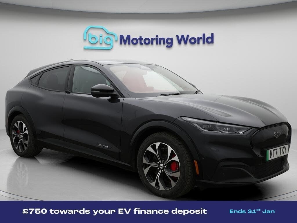 £750 towards your finance depo-Our Ford Mustang Mach-E comes with optional extras worth £1,150. Specification includes a range of fantastic features including £750 towards your finance deposit, All Wheel Drive, Panoramic Roof, 19'' Alloy wheels, Leather Seats, Apple CarPlay, Adaptive Cruise Control, Bang & Olufsen Speakers, Premium Sound System, Privacy Glass Specification information is supplied by CAPHPI and may vary to the actual car. This data does not form any part of a buying contact. Please check specification prior to purchase in-store. The MOT is valid until January 2027, visit bigmotoringworld.co.uk for more photos, a 360 tour, service history and a free HPI report.Were BIG on peace of mind and this Grey Ford Mustang Mach-E has completed our comprehensive 200 point inspection and passed all checks. Its ready for you to drive away with immediate collection in-store. We include a 90-day warranty as standard plus an option to extend for up to 3 years.Reserve this car exclusively for you, safely and securely at bigmotoringworld.co.uk, with a fully refundable £99 deposit. Test drive before you buy, with no commitment, no hassle and a completely haggle free experience. Still searching and want to see thousands more cars? We are BIG on choice with over 8000 cars to choose from.Visit our award winning web site bigmotoringworld.co.uk.Were Big Motoring World and were BIG on what matters to you.