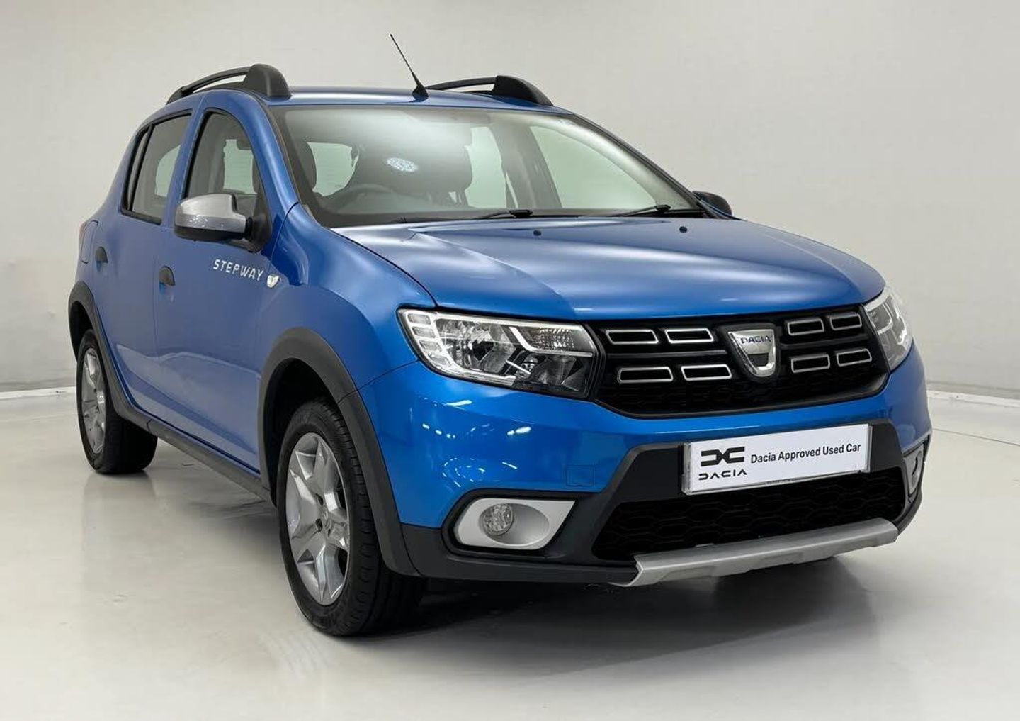 Bluetooth system,Eco mode,PAS,Rev counter,Stop/start system,Raised ride height,Aux input,DAB/FM/AM radio with fingertip controls and 4 speakers,USB connection for MP3 players,3 speed windscreen wipers,Black door handles,Black side sills,Body colour bumpers,Chrome front grille,Double optic headlights with chrome surround,Electric front windows + drivers one touch,Front fog lights,Heated rear window,High level third rear brake light,LED daytime running lights,Manual adjustable rear windows,Manually adjustable door mirrors,Metal grey door mirrors,Metal grey roof bars,Rear wash/wipe,Satin chrome fog lamp embelisher,Satin chrome skid plate,Stepway logo on front door panel,Tinted windows,Wheelarch extensions,12V power point for rear passengers,12V socket by gear lever,3 rear height adjustable headrests,60/40 split folding rear seat,Boot light,Cloth upholstery,Driver's seat height adjustment,Front courtesy lights,Front passenger grab handle,Front seat back map pockets,Gear shift indicator,Headlights left on audible and visual warning,Heating/ventilation unit with 4 speed fan,Height adjustable front headrests,Height adjustable steering wheel,Isofix child seat mounting points on outer rear seats,Manual air conditioning,Passenger sunvisor with vanity mirror,Rear passenger grab handle,Satin Chrome door handles,Two tone door panels dark carbon/light grey,3x3 point rear seatbelts,ABS+EBA,Child locks on rear doors,Door open visual warning,Driver's airbag,Electronic brake force distribution,ESC with ASR and Hill start assist,Front seatbelt unfastened audible+visual warnings,Front side airbags,Height adjustable front seatbelts,Passenger airbag with deactivation function,Tyre pressure monitor,Anti-intruder automatic door locking system,Remote central locking,Thatcham approved engine immobiliser,Satin chrome air vent surround,Satin chrome centre console surround,Satin chrome instrument dial surrounds,16" Stepway steel wheels with alloy look trims,Azurite Blue,Emergency Spare Wheel,Stepway Cloth - Dark Carbon