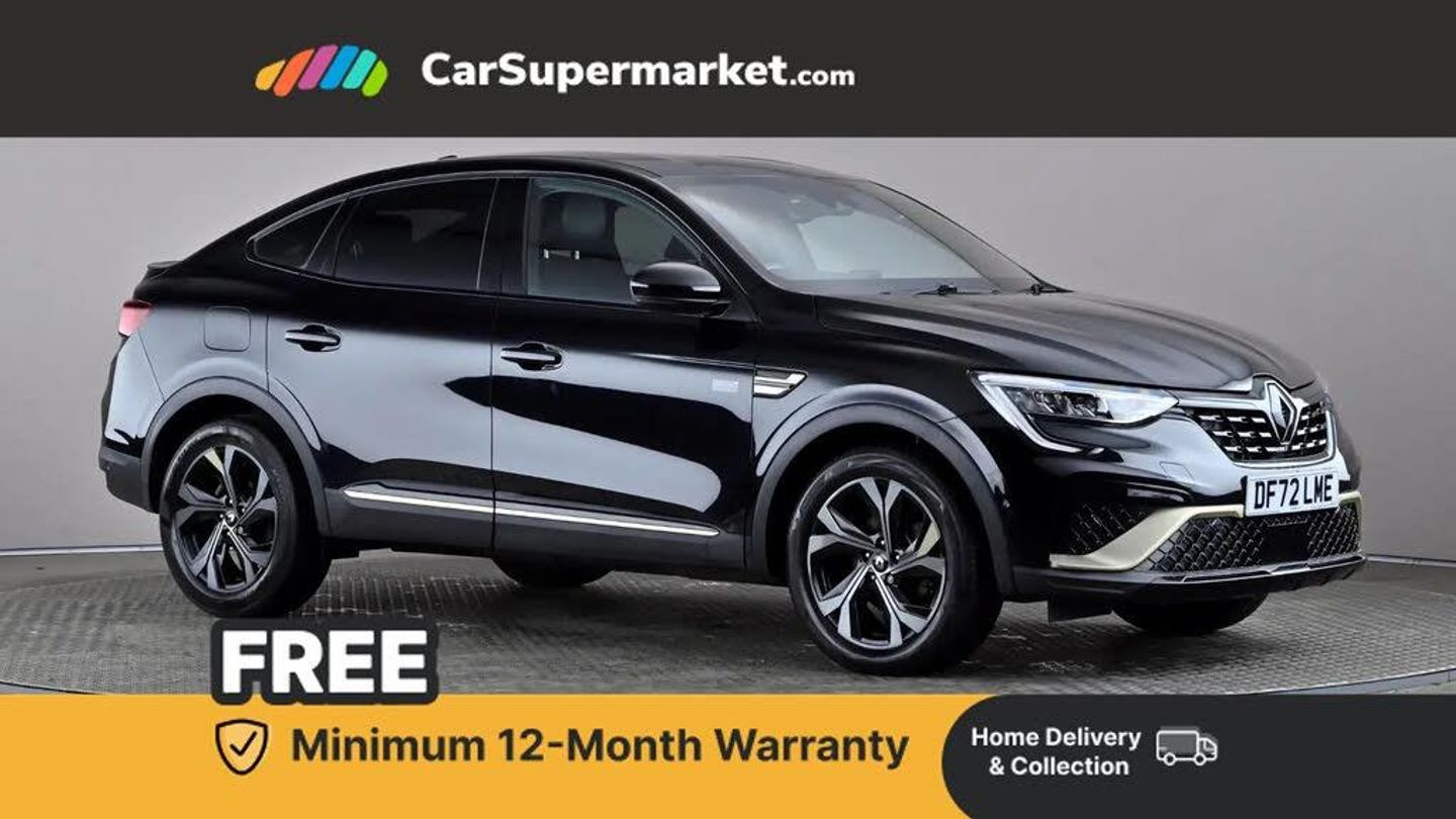 10" TFT Driver information display,Adaptive cruise control and speed limiter,Blind spot warning,Bluetooth system,EASY LINK 9.3" portrait touchscreen with navigation, Google search and traffic information,Eco mode,EV button to activate pure mode,Front and rear parking sensors,Gear change indicator,Lane departure warning,Lane keep assist,Multi-sense - 3 driving modes and 8 ambient lighting,Rear cross traffic alert,Rear view camera,Renault automatic emergency assist,Smartphone integration compatible with Apple CarPlay and Android Auto,Traffic sign recognition with over speed prevention,Trip computer,Variable assistance electric power steering,Wireless phone charger,Arkamys classic sound system with 6 speakers,DAB radio,USB port,3rd brake light,Auto dimming rear view mirror,Automatic full LED headlights,Automatic headlights,Automatic high / low beam,Automatic windscreen wipers with rain sensor,Black door mirrors,Black side door protection with gun metal insert,Body colour rear boot spoiler,Body coloured bumpers,C-shaped LED front signature lighting (333 high),Double chromed exhaust tailpipes elements,E-TECH Engineered front and rear skid plates,E-TECH Engineered front bumper with warm titanium blade,Exterior chrome enhancement,Extra tinted rear windows and tailgate,Frameless rear view mirror,Front and rear electric windows,Front driver window with one touch facility and anti-pinch function,Front grille with chrome on upper part,Heated rear window,Rear windscreen wiper,Shiny black shark fin antenna,3 seat bench in 2nd row,60:40 split and fixed base rear seats,Aluminium pedals,Automatic climate control with combined filter, humidity sensor and AQS,Black interior roof lining,Carbon style dashboard,Central console with storage,E-TECH Engineered leather steering wheel,E-TECH Engineered suede-leather upholstery with gold stitching,Front and rear head restraints,Heated front seats,Heated steering wheel,Height and reach adjustable steering wheel,ISOFIX child seat fixing points on rear outermost seats,LED front and rear roof lights,Power adjustable driver and passenger seat with lumbar adjustable drivers seat,Rear air vents,Single front passenger seat,Variable boot floor,Parking Pack - Hands-free parking & flank protection - Arkana,3x3 point rear seat belts,ABS+EBA,Active emergency braking system,B Brake Mode - One pedal driving with increased regenerative braking,Distance warning alert,Driver airbag,Driver and passenger front and side airbag deactivation,Driver and passenger side airbags,Driver height adjustable seat belt,Electronic parking brake with auto hold,ESC (Electronic Stability Control),Front and rear no seatbelt warning sound,Front curtain airbags,Front head airbags,Hill start assist,Passenger airbag,Sound for pedestrian (1 to 30 kph),Tyre pressure warning light,Anti drill door locks and locking fuel cap,Central door locking,Deadlocking system,Hands free keycard with Keyless access and start,RAID (Renault Anti-Intruder Device) automatic door locking,Rear side wing door and window child locking function (front driver door control panel),Thatcham alarm,18" diamond cut E-Tech engineered alloy wheels,Black
