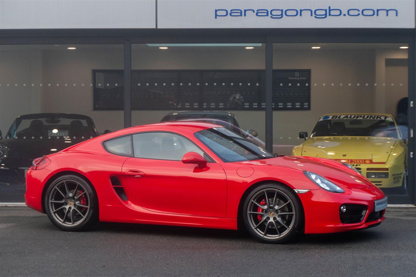 Porsche Cayman S (981) 7-speed PDK, Guards Red, Black leather sports seats, air conditioning, Porsche active suspension management & Porsche stability management, stop/start function, automatic headlights, LED daytime running lights, bi-xenon headlights, sport button for increased throttle response.