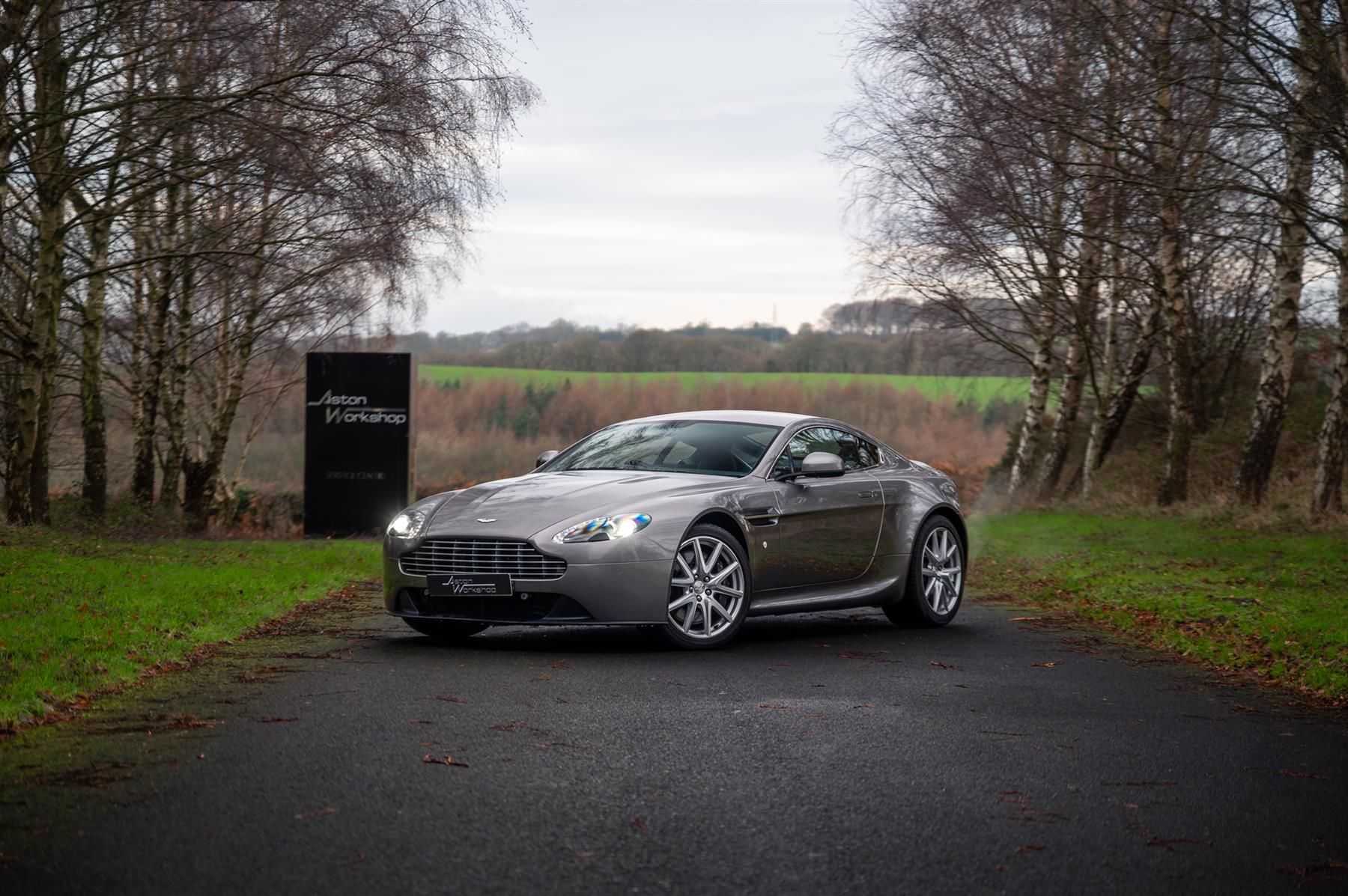 he V8 Vantage provided a directly sporting element to the Aston Martin model range, with its V8 engine producing 420bhp and 470Nm of torque in its 4.7L guise (As fitted on 2009MY to 2016MY cars). This car, a low mileage 2014 model, is finished in Satin Tungsten Silver over an Obsidian Black interior with contrasting Silver stitching and Black carpets. These later V8 Vantages feature many of the features of the V8 Vantage S model, including chassis tweaks to increase rear grip and quicken the steering. The extensive list of optional extras on this car includes: