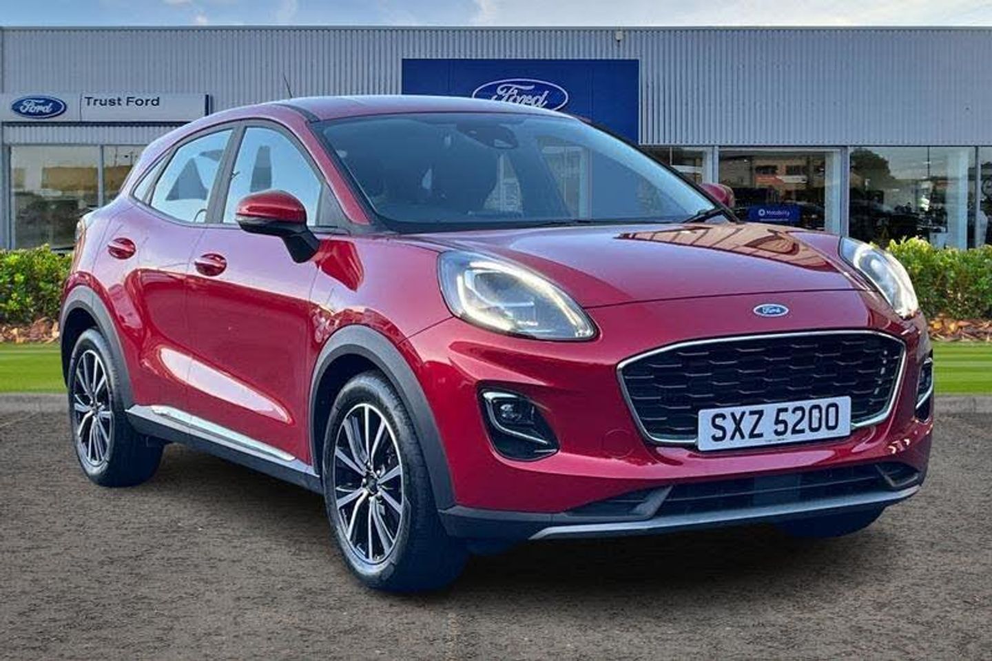 Driver impairment monitor, Emergency call service, Ford easy fuel, Lane keeping aid with lane departure warning, Power assist steering, Power start button, Rear parking sensor, Selectable drive modes(Normal, Eco, Sport, Slippery and Trail), Speed sign recognition, Automatic headlights with auto high beam, Automatic rain sensing wipers, LED rear lamps, Power foldable heated door mirrors with puddle lamps, Projector headlamps with LED day time running lights and front fog lamps, Quickclear heated windscreen, Rear side wing doors, Rear wiper, Third brake light, 3 seat bench in 2nd row, Centre console with armrest and stowage, Electronic automatic temperature control (EATC), Ford megabox extended bootspace, Front and rear head restraints, Front floor mats, Manual 2 way passenger seat adjustment, Manual 4 way driver seat adjust with lumbar adjustment, Sensico leather steering wheel/gear knob/handbrake, Single front passenger seat, Titanium cloth upholstery, 3 rear seatbelts, Child safety lock, Electronic stability control (ESC) and hill start assist, Pedestrian/cyclist detection & post-collision braking, Pre collision assist system, Tyre pressure monitoring system (TPMS)