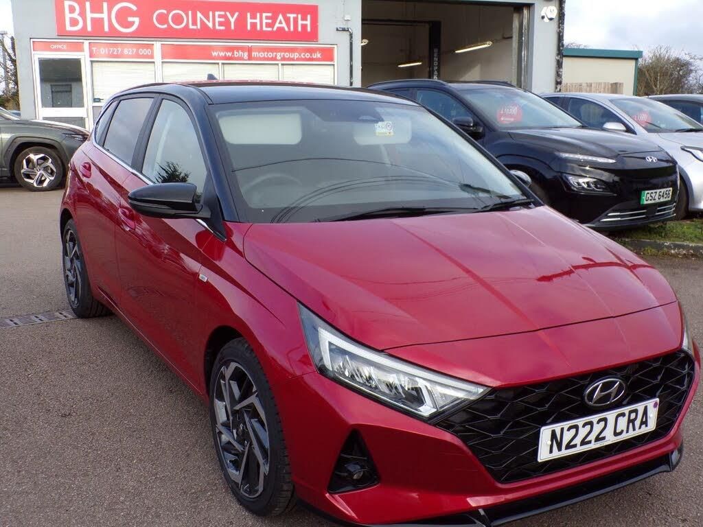 Black Cloth interior.This 2022 Hyundai i20 T-GDi Ultimate presents an exceptional ownership proposition with its remarkably low mileage of just 5514 miles AND THE BALANCE OF HYUNDAI'S 5 YEAR WARRANTY, having been cherished by only one owner. This Euro 6 compliant 1.0 litre petrol hybrid is presented with a full dealership service history, offering peace of mind. The Ultimate trim level ensures a wealth of advanced features, including a rear view parking camera with parking assistance, blind spot collision warning for enhanced safety, and a heated steering wheel for added comfort during colder journeys. Connectivity is seamless with Apple CarPlay integration, and the LED headlights with static cornering illuminate your path effectively., , The generous boot space of this i20 makes it a practical choice for everyday life, easily accommodating shopping or luggage. These carefully selected features and its pristine provenance, including the very low mileage for its age and single owner history, clearly set this Hyundai i20 apart from other vehicles in its class, offering a superior driving and ownership experience., PLEASE CALL TO VIEW OR RESERVE AS CARS ARE KEPT IN 2 LOCATIONS . . . . FOR YOUR PEACE OF MIND . . . . ALL CARS ARE HEALTH CHECKED . . . . SERVICED IF DUE . . . . NEW MOT IF LESS THAN 6 MONTHS LEFT.....HPI CHECKED . . . . VALETED . . . . PART EXCHANGE WELCOME . . . . COMPETITIVE FINANCE RATES AVAILABLE (subject to status) . . . . OVER 100 MORE VEHICLES ON OUR WEBSITE,