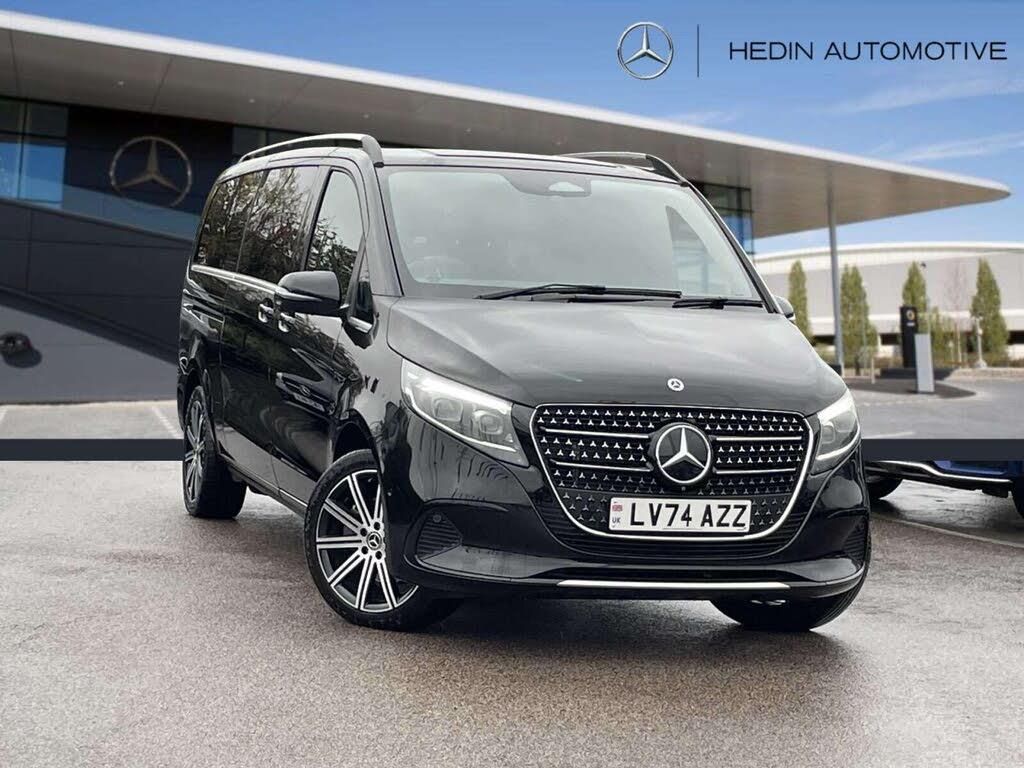 10.25" media display, Active distance assist DISTRONIC, Active lane keeping assist, Agility select with a choice of driving modes (Comfort, ECO, Sport, Individual), Attention assist, Blind spot assist, Comfort closure incl. boot, Crosswind Assist, Cruise control, Direct steer speed sensitive steering, e-Call (emergency call), ECO start/stop function, Intelligent speed assistance, MBUX navigation with 2 x 12.3" widescreen cockpit display with touchscreen, Mercedes me connect, Service indicator assist, Sidewind assist system, Status display for rear seat belts in instrument cluster, Traffic sign assist, Wireless charging for smartphone, 57 litre fuel tank, 9G TRONIC automatic transmission, Absorbed glass mat battery 12 V 92 Ah, Agility control comfort suspension, 2 USB ports and one SD card slot centre console, 2-way speakers in the front and rear, DAB radio, Frontbass loudspeakers, Adaptive brake lights, Anodised roof rails, Automatic lights, Bumpers and attachments painted in the vehicle colour, H7 reflection-type headlamps, Heat-insulating windows all round, Heated exterior mirrors, electrically adjustable, with integral indicator lamp, Illuminated exits, Illuminated mirror for sun visor, LED DRL, LED tail lamps/brake lamps and indicators, Multibeam LED headlights with adaptive highbeam assist plus, Privacy glass, Radiator shell with Mercedes-Benz pattern, Rain sensing windscreen wipers, Separately opening rear window, Sport bodystyling, Tailgate surround lighting, Window in tailgate with wash and wipe system, 3 seat bench in 2nd row, 3 seat bench in 3rd row, Air conditioning - semi-automatic, TEMPMATIC in rear, Ambience lighting 64 colours cockpit + rear passenger compartment, Armrests for seating in the passenger compartment, Carpeting in rear passenger compartment, Centre console with storage/cupholders, Comfort drivers seat, Comfort overhead control panel, Front and rear footwell lighting, Hot air duct to the passenger compartment, Illuminated grab handle with reading light, Lighting in the rear grab handles, Lugano leather upholstery, Lumbar support for driver's and front passengers seat, Multifunction 3-spoke leather steering wheel with touch controls, adjustable in inclination and height, Reach and rake adjustable steering column, Rear head restraints, Single front passenger seat, Stowage nets behind individual seats, THERMOTRONIC automatic climate control, Touchpad, Aerodynamics package - V class, Comfort seat package - V class, Electric package - V class, Mirror package - V class, Navigation package - V class, Parking package with 360 degree camera - V class, Smartphone integration package - V class, Sport package - V class, Winter package - V class, 3 point seatbelts on all seats, ABS, Active brake assist, Automatic front passenger airbag deactivation, Centre airbag, Child safety locks in passenger compartment doors, CO2-optimised brake system, Driver and front passenger thorax/pelvis side airbags, Dual airbags for driver and front passenger, Electric parking brake, ESP, Hill start assist, Pedestrian protection, Pre safe, Rear seat belt pretensioners, Seat belt warning device for front passenger seat and rear seats, Seat occupancy sensor, Tyre pressure monitoring system, Window airbags for driver, front passenger and rear passenger, Keyless Start, Full wheel covers, Summer and comfort tyres