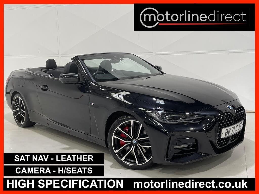 FINANCE & PART EXCHANGE AVAILABLE* - Only 2 registered keepers & 71,411 miles from new, SERVICE HISTORY, 2 KEYS - this STUNNING BMW 420I 2.0 M SPORT CONVERTIBLE AUTOMATIC is finished in stunning sports Black Sapphire metallic & is complimented with contrasting full black Vernasca leather sports trim and extends itself to the following additional features - BMW M Sports aerodynamic styling, on board satellite navigation system, reverse camera, BMW Live Cockpit Professional, 3 zone climate control / automatic air conditioning, trip computer, cruise control with speed limiter, ''M'' leather trimmed multi function steering wheel with paddle shift, front & rear park distance control, park assistant, driver & passenger electric heated front seats with driver memory, Bluetooth telephone prep, DAB digital radio, media input, BMW Apps, Apple CarPlay / Android Auto, voice command, keyless start, start / stop, lumbar support, adaptive driving modes, front collision warning, lane depart warning, speed sign assist, electric folding & heated exterior mirrors, adaptive LED auto headlights, rain sensor, power assisted steering, abs, airbags, electric mirrors, electric windows, remote central locking, head restraints, BMW 19'' sports alloy wheels finished in stunning sports gloss black and silver, BMW anti theft system. ***FINANCE AVAILABLE - subject to status. T&C's apply.***PART EXCHANGE AVAILABLE***ALL VEHICLES ARE HPI & NATIONAL MILEAGE REGISTER CHECKED***THE AA WARRANTY IS SUBJECT TO TERMS & CONDITIONS AND DOES NOT COVER VEHICLES THAT ARE BEING USED FOR TAXI, PRIVATE HIRE, CHAUFFEURING PURPOSES OR FOR REWARD.***Please note, that the specifications/components/features etc. are generic to that vehicle of the type advertised but may not be included in the specific vehicle that is for sale. It is for the intended purchaser to satisfy themselves of the presence or absence of any specifications/components/features before sale. Please ask if you are uncertain of anything and we will see if we can assist.-NAV-LEATHER-H/SEATS-CAMERA-SPECS INCLUDE AMG M SPORT S LINE QUATTRO 4X4 AWD NAV LEATHER SUNROOF PANORAMIC HEAD UP & ULEZ MODELS