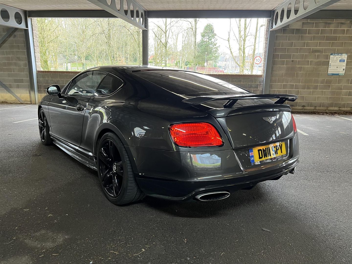 Carbon front splitter, side skirts, rear diffuser + supersports carbon rear spoiler (nb.this may not be genuine, i can’t tell) along with discrete Bentley winged badges.