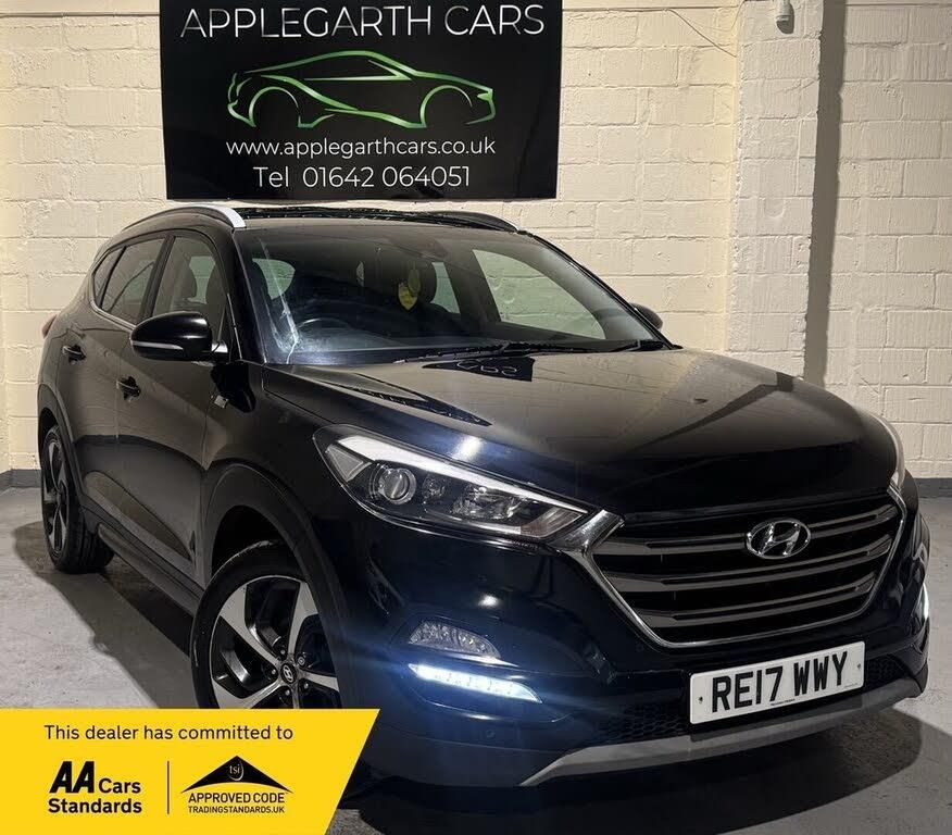 Hyundai Tucson 1.7 CRDi Blue Drive Sport Edition SUV – Euro 6 Registration: RE17 WWY Year: 2017 (17) Mileage: 79,300 miles Fuel Type: Diesel Transmission: Manual Body Type: SUV Colour: Black Engine Power: 116 PS Emissions Standard: Euro 6 with Start/Stop This Hyundai Tucson Sport Edition is a well-balanced, modern SUV that combines strong looks, excellent practicality, and impressive fuel efficiency. The 1.7 CRDi diesel engine delivers smooth performance while remaining economical, making it ideal for long journeys, commuting, and family use. Finished in black, this Tucson has a sharp, confident road presence and benefits from the desirable Sport Edition specification, offering both comfort and technology in abundance. Key Features and Specification: 1.7 CRDi Blue Drive diesel engine (116 PS) Euro 6 compliant with Stop/Start technology 6-speed manual gearbox Sport Edition trim 19-inch alloy wheels Half leather interior Heated front seats Touchscreen satellite navigation system Rear parking camera Front and rear parking sensors Dual-zone climate control Cruise control and speed limiter Bluetooth connectivity with voice control DAB digital radio USB and AUX connectivity Multifunction steering wheel Electric windows and mirrors Remote central locking Spacious boot with split-folding rear seats ISOFIX child seat mounting points The Tucson is known for its reliability, comfortable ride, and generous interior space, making it a practical yet stylish choice in the SUV market. With its strong specification and economical diesel engine, this vehicle represents excellent value. Viewings and test drives are welcome. Applegarth Cars is a trusted used car dealership dedicated to providing high-quality, pre-owned vehicles at competitive prices. With a strong commitment to customer satisfaction, we offer a diverse selection of cars, from reliable family vehicles to performance and luxury models. We pride ourselves on transparency, fair pricing, and exceptional service. Whether you’re buying, selling, or looking for finance, we make the process smooth and hassle-free. Visit Applegarth Cars today and drive away with confidence.