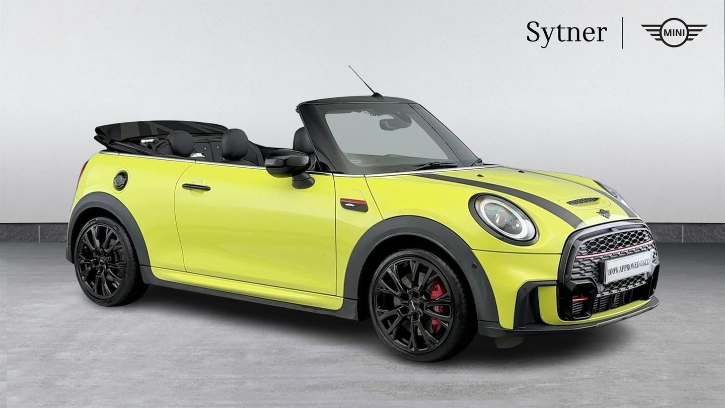 Reserve Online,18" JCW Course Spoke 2-Tone Alloy Wheels,Navigation Pack,Comfort Plus Pack,Convertible Pack,Driving Assistant Pack,Harman Kardon Surround Sound Audio System,Heated Steering Wheel,Heated Front Windscreen,Sport Seats - Front,Adaptive LED Headlights with Matrix Function,Intelligent Adaptive Suspension,MINI Yours Union Jack Softtop,Black Bonnet Stripes,Silver Chequered Interior Surfaces