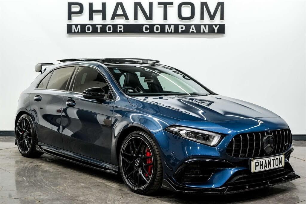 STRICT APPOINTMENT ONLY, 2025 AUTOTRADER HIGHLY RATED AWARD WINNER, LOW RATE FINANCE. Nationwide delivery available. Finished in Denim Blue we have a monstrous Mercedes-Benz A45S 4Matic+. This vehicle has just three previous owners and comes with Mercedes-Benz services at; 1k, 4k, 8k, 10k, 13k. 5 years guarantee with lifetime MOTs available. Our A45s comes kitted with a plethora of premium features such as; Sliding panoramic sunroof, Burmester premium sound system, Privacy glass, AMG aero kit, 19inch alloy wheels, 10.25in Media Display, AMG Aerodynamics Package, AMG Bodystyling - Front and Rear Apron, AMG Drive Unit including AMG Dynamic Select Controller, AMG Dynamic Select with a Choice of Driving Modes, AMG Instrument Cluster with Colour Display and AMG Menu, AMG Leather Package, AMG Night Package, Air Conditioning - THERMOTRONIC Luxury Automatic Climate Control - Two-Zone with Display, Blind Spot Assist, Door Mirrors - Electrically Adjustable and Heated with Integrated LED Indicators, Electronic Stability Programme - Three-Stage, Exhaust System - AMG Real Performance Sound, Heated Front Seats, nterior 64-Colour Ambient Lighting, MULTIBEAM LED Headlights with Adaptive Highbeam Assist Plus, Reversing Camera with Parking Guidelines, Seats - AMG Performance, Seats - AMG Performance High-End Package.