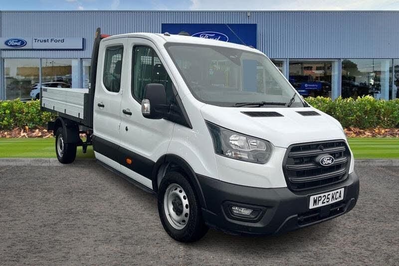 QUICKCLEAR HEATED WINDSCREEN uses ultra thin filaments that superheat to de-ice and de-mist your windscreen as well as help de-freeze the wipers and works in seconds, HILL START ASSIST temporarily stops you rolling backwards or forwards when making a hill start - maintaining pressure to the braking system for an extra 25 seconds giving you more time and control as you move your foot from the brake to the accelerator, CRUISE CONTROL provides extra comfort on longer journeys allowing you take your foot off the acceleration whilst just focusing on steering the vehicle, BLUETOOTH HANDS FREE WITH VOICE CONTROL allows you to operate both your mobile phone and Ford audio system - controlling several functions using a set list of simple voice commands, Front independent MacPheron struts, Rear windows - Fixed glass only ilo less rear window, Wireless Apple CarPlay and Android Auto, Automatic on/off headlights, Driver's airbag, Recirculation heater, Centre console, Warning lights, Key operated bonnet release, Door mirrors - Blind spot eliminator and integrated side indicator, Reach and rake adjustable steering column, Audio controls mounted on steering wheel, 2 x 12V power outlets, Part body colour front bumper, 4 Front speakers (2 woofers and 2 tweeters), Front door map pockets, Hill start assist, Gearshift indicator light, Multi stage vehicle, Daytime running lights, Powder coated white aluminium sideboards and tailboards with auto rear tip feature, Rope hooks, Low roof line, Electronic dynamic cornering control, Emergency brake assist, Roll stability control, Side wind mitigation, Underseat storage compartment (Under dual passenger seat), Tablet holder, 2 x ISOFIX child seat attachments on 2nd row, Intelligent Speed Assist, Multi channel door entry remote, linear rate coil springs, Front passenger's airbag including airbag deactivation switch, High strength lightweight steel subframe, audible signal if a door is ajar when locking activated, AdBlue aftertreatment system - 24 Litre, Ford Easy Fuel capless refuelling system with misfuel inhibit, Emergency assistance, 4-Spoke Polyurethane steering wheel, Visible Vehicle Identification Number (VIN), Overhead console, Header mounted courtesy lights front with theatre dimming, Vehicle maintenance monitor, gas pressured shock absorbers and rear leaf springs, Emergency brake warning, Rear fog lamps, Electronic Stability Control (ESC), Tyre pressure monitoring system, Curve control, Adaptive front lighting system, Rear axle Alt A - Narrow track, Rear seat pack 1 - Transit, Electric power assisted steering (EPAS), Driver one touch up/down power windows, Driver and passenger seatbelt reminder, Non limited slip differential front axle, Fixed 2nd row L/H side window, Brakes - ESP/HLA/FBS, Side marker lamps, Day/Night inside mirror, Quad beam headlamps, Complete tinted glass, Collision mitigation system, Unperforated cab back panel, Extended molded headliner, Wrong way alert, Start/stop system, Less load compartment loops, Fixed 2nd row R/H side window, Exhaust exit behind muff down, 8 Part digital instrument cluster, Self colour door handles, Self colour front grille, Halogen projector headlights, stabiliser bar, Battery - Cold start function (-20 degree C), Twin, 2 litre bottle capacity, fascia mounted bottle holder, Driver's side storage compartment on facia top, Roof mounted fin antenna, 2-way head restraints on front seats, 2-way head restraints on rear seats, Automatic front wipers with rain sensor, Anti-lock braking system (ABS) with electronic brake-force distribuition (EBD), Load adaptive control, Front side and curtain airbags, 3-point diagonal inertia reel seatbelts for all front seats, Standard seatbelts for all rear seats, Driver seatbelt pre-tensioner, Immobiliser - Safeguard passive anti-theft system (PATS), Audio mis-lock feedback, Auto locking on drive away, doors automatically lock at 5 mph, Remote control central locking with 1 key fob, Power central locking, Dual circuit