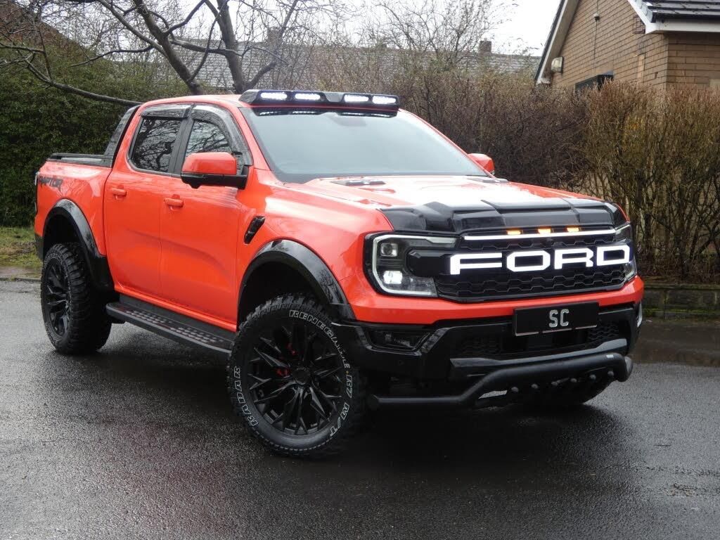 This 2025 Ford Raptor is an outright weapon, finished in a striking orange that refuses to be ignored and made even more menacing by rare gloss black colour coding throughout. The wide-arch body styling gives it a brutally planted stance, amplified by roof-mounted LED lights and a gloss black F-150âstyle Ford grille that sets the tone from the front. It sits aggressively on brand-new 20-inch gloss black alloys wrapped in fresh mud terrain tyres, looking every bit like it was built to dominate streets, tracks and everything in between. Step inside and the attitude continues with a custom black and orange interior that perfectly mirrors the exteriorâs aggression. Itâs loaded with serious tech and driver-focused features, including a 360-degree camera, sat nav, DAB radio, heated seats, a heated steering wheel and paddle shift for when you want full control and maximum engagement. This is not a standard Raptor and it never will be â itâs a very unique build, genuinely one of one, engineered to stand apart and command attention wherever it goes. This isnât just a truck, itâs a statement.