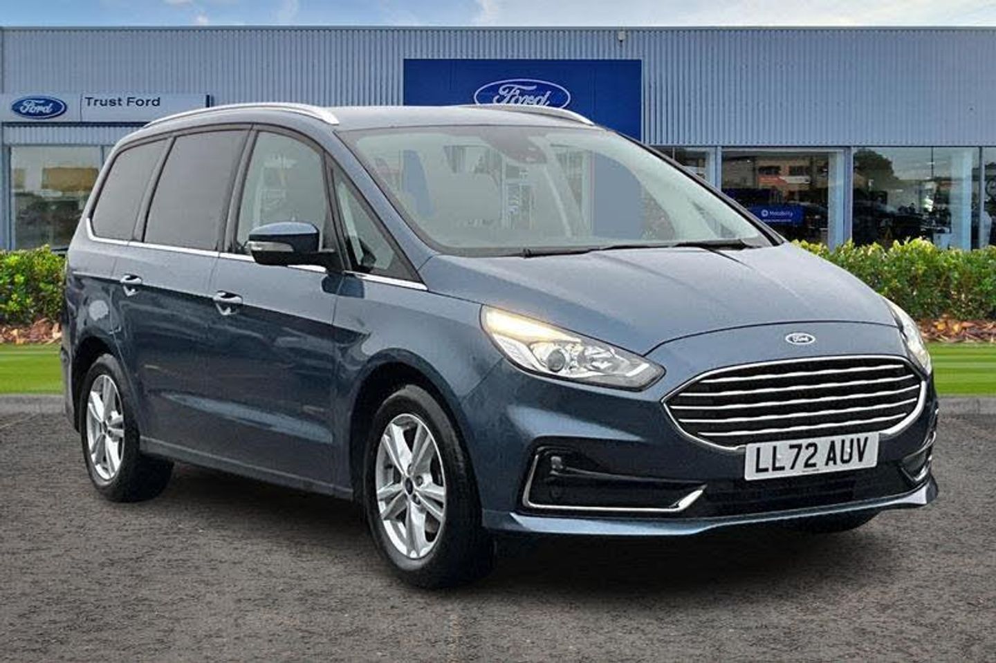 'Ford Power' starter button, 10.1 semi digital cluster, Easy fuel capless refuelling system, eCall emergency call system, Ford pass connect embedded modem, Front and rear parking sensors, Hydraulic PAS, Lane keeping aid - Driver impairment monitor, active steering with lane departure warning, Lights on warning, Outside temperature display, Traffic sign recognition, Trip computer, Auto dimming rear view mirror, Auto high beam assist, Automatic headlights, Automatic wipers with variable sensitivity adjustment, Body colour bumpers, Body colour door mirrors, Chrome trim to lower side windows, Dual exhaust pipes, Electric front and rear windows + one touch + global open/closing, Front fog lights, Halogen headlight with cornering lights, LED daytime running lights, LED rear lights, LED third brake light, Lower front grille with chrome surround, Power folding and heated door mirrors, Quickclear heated windscreen, Rain sensor, Rear privacy glass - dark glass to rear windows, Rear side wing doors, Silver roof rails, 2 height adjustable headrests - 3rd row, 230V power outlet in centre console, 2nd row reading lights, 3 height adjustable headrests - 2nd row, 3 individual fold flat 2nd row seats, 3rd row rear seats with manual fold flat, slide/recline and manual easy entry, Ambient interior lighting (excludes 2nd row footwell), Driver/passenger sunvisors with illuminated vanity mirrors + covers, Dual zone air conditioning, Floor mats in all three rows, Front door scuff plates, Front headrests, Front seat armrests, Front seat storage pockets, Front seatback tables, Front sports seats, ISOFIX attachments for child seats in 2nd row, Leather gear knob, Leather trimmed steering wheel, Manual adjustable front seats + lumbar support, Overhead console with child observation mirror, Pollen filter, Reach + rake adjustable steering column, Rear cupholders, Single passenger seat, Sunglasses storage, 3 point seatbelts on all seats, ABS, Child proof door locks, Driver and passenger airbags, Driver and passenger side airbags, Drivers knee airbag, Electric handbrake, Electronic brake force distribution, ESP with traction control + emergency brake assist, Pre-Collision assist with AEB, Seatbelt warning, Side curtain airbags, Tyre pressure monitoring system