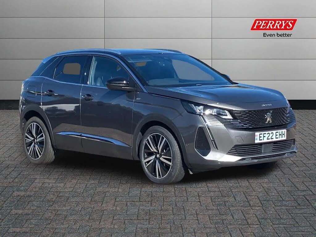 ;Finished in metallic grey, this Peugeot 3008 comes with 2 keys, 1 previous owner and full service history, 1st 06/06/23 1.532mi 2nd 11/06/24 3.394mi 3rd 18/06/25 5.686mi. Features include, dual zone climate control, cruise control with speed limiter, automatic headlights, traffic sign recognition system, USB connectivity, Bluetooth, DAB digital radio, steering wheel audio controls, Apple carplay and Android auto,rear parking sensors and LED headlights, heated seats, reverse camera, front and rear sensors, blind spot monitoring and automatically folding mirrors, satellite navigation. This vehicle is also available with excellent finance and extended warranty options. Perrys, Over 100 Years In Business. A £149 administration fee is applicable to the advertised price upon purchase of this vehicle. Refer to our terms and conditions for details.