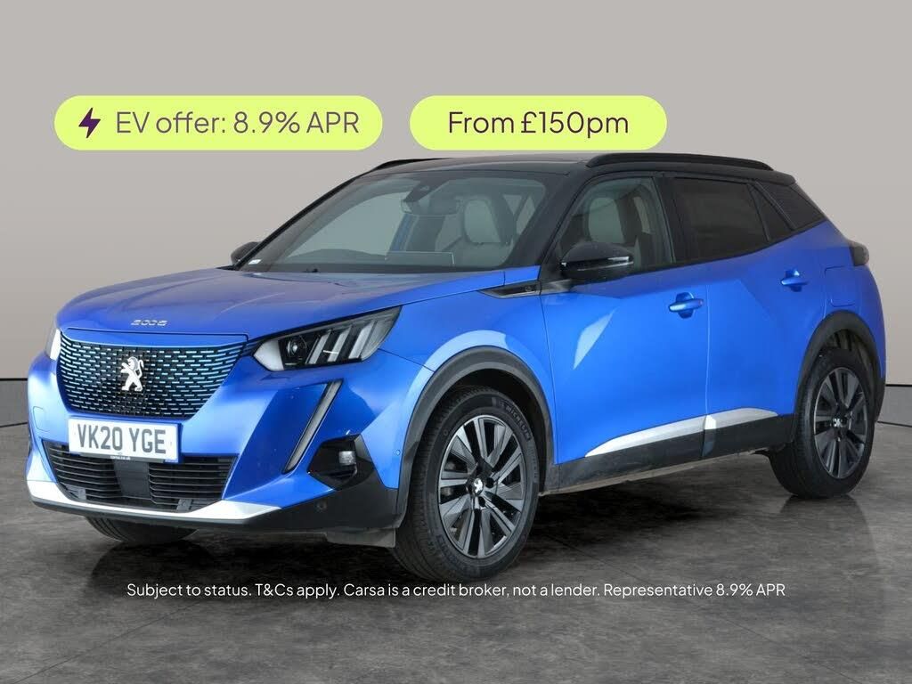 Experience the Peugeot E-2008 GT in striking blue, offering pure electric driving with style and comfort. Enjoy premium features including adaptive cruise control, heated seats, advanced LED headlights, and a clear digital display. Stay seamlessly connected with Apple CarPlay, wireless charging, and integrated WiFi. Safety is paramount with blind spot assist, active lane keeping, and lane departure warning. Effortlessly navigate journeys with built-in sat nav and enjoy dynamic driving modes tailored to your mood. Discover a smarter way to drive. 3 services recorded, last serviced on 30/11/2025 at 39,859 miles. MOT to 08/12/2026. Visit our website for service history, online valuation, full vehicle specification plus multiple images. Any feature/option specified here is from 3rd party data. We cannot guarantee the accuracy of any specification supplied by a 3rd party. We recommend that you physically check the specification of the vehicle on site prior to purchase. This information does not form part of the buying contract. Terms & Conditions apply. We have over 2,000 cars available from our 10 national branches, check our website to see all our stock. Our Trustpilot rating is 4.4/5 with over 9,000 reviews.