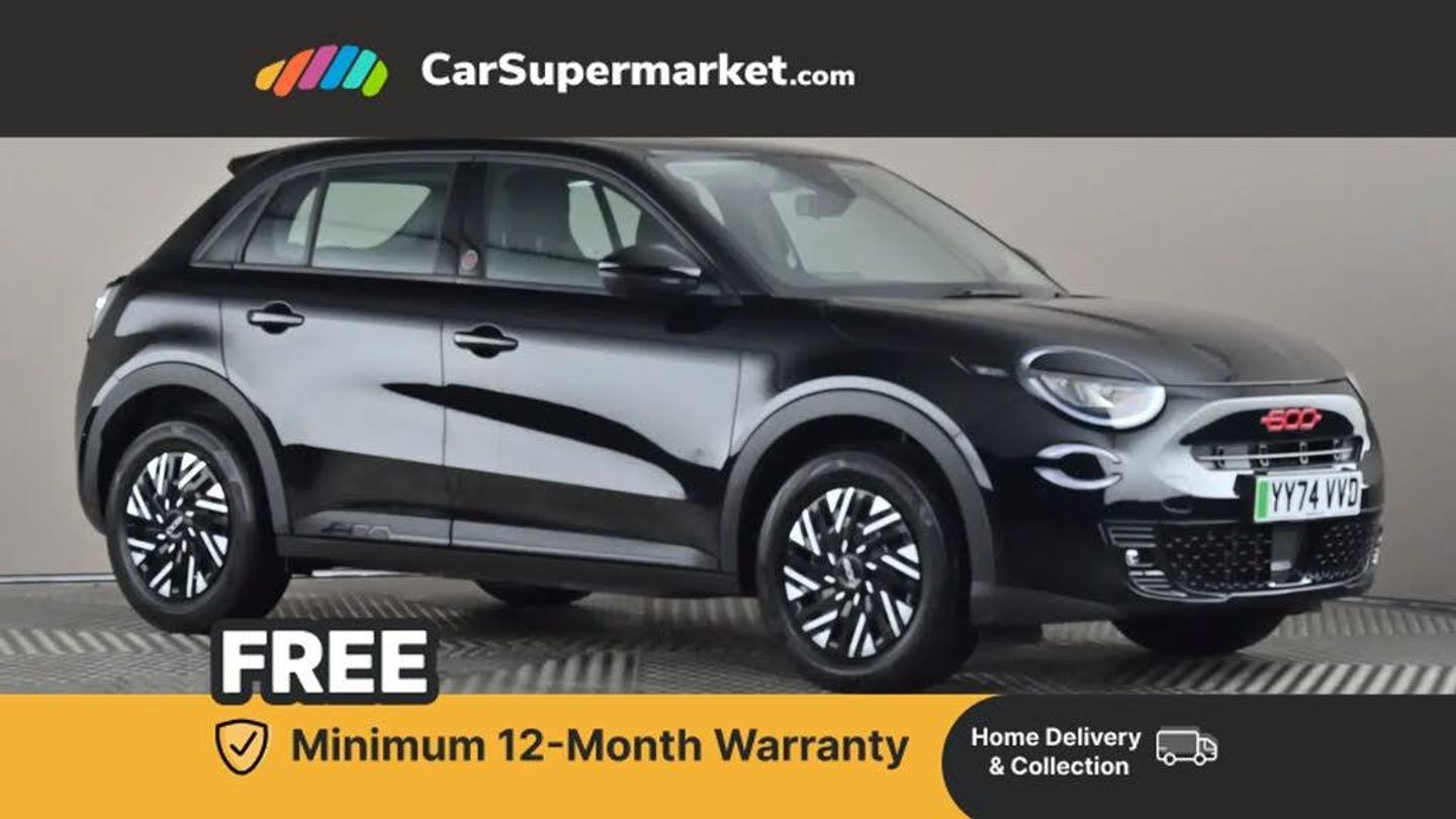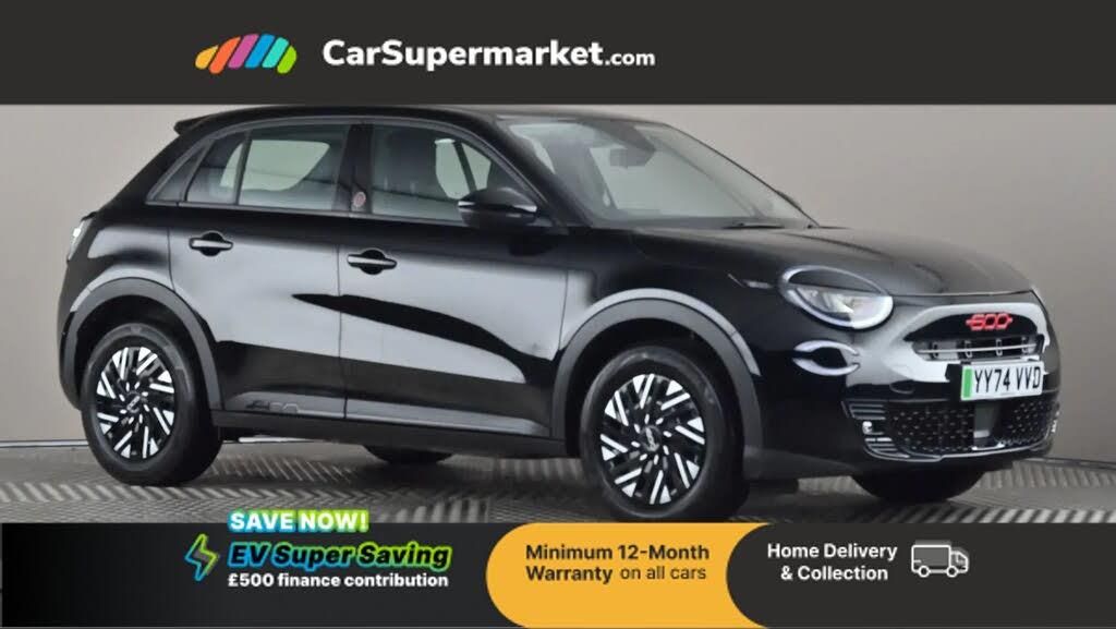 Bluetooth, Cruise Control, Lane Departure Warning, Parking Sensors, Traffic Sign Recognition, Android Auto, Apple CarPlay, Automatic Climate Control;This 2024 Fiat 600e RED boasts exceptionally low mileage for its age, having covered just 3688 miles, and benefits from an MOT valid until November 2027. As an all electric vehicle, this RED trim model features a 54 kWh battery offering a maximum range of 254 miles when new. Recharging at home using a 7kW charger takes approximately 8 hours and 15 minutes, while rapid public charging can replenish the battery from empty to 80% in as little as 36 minutes. This Fiat 600e is also equipped with convenient Rain and Dusk Sensors that automatically activate the headlights, along with Rear Parking Sensors to assist with manoeuvring. The Fiat 600e RED stands out with its impressive electric range and swift charging capabilities, making it a practical choice for both daily commutes and longer journeys. The inclusion of automatic headlights and rear parking sensors enhances the driving experience, offering greater ease and safety. These features, combined with its near new condition and excellent provenance, position this electric Fiat 600e as a compelling option for those seeking an efficient and well equipped vehicle.