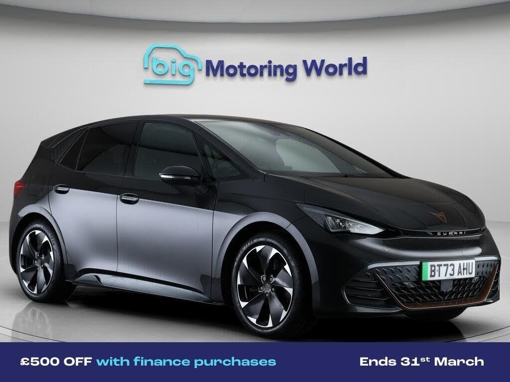£500 towards your finance depo-Our CUPRA Born is finished in Grey. Specification includes a range of fantastic features including £500 towards your finance deposit, Head up Display, Apple CarPlay, Lane Assist, Android Auto, Privacy Glass, Heated Seats, Rear View Camera, Parking Sensors, Ambient Lighting Specification information is supplied by CAPHPI and may vary to the actual car. This data does not form any part of a buying contact. Please check specification prior to purchase in-store. The MOT is valid until December 2026, visit bigmotoringworld.co.uk for more photos, a 360 tour, service history and a free HPI report.Were BIG on peace of mind and this Grey CUPRA Born has completed our comprehensive 200 point inspection and passed all checks. Its ready for you to drive away with immediate collection in-store. We include a 90-day warranty as standard plus an option to extend for up to 3 years.Reserve this car exclusively for you, safely and securely at bigmotoringworld.co.uk, with a fully refundable £99 deposit. Test drive before you buy, with no commitment, no hassle and a completely haggle free experience. Still searching and want to see thousands more cars? We are BIG on choice with over 8000 cars to choose from.Visit our award winning web site bigmotoringworld.co.uk.Were Big Motoring World and were BIG on what matters to you.