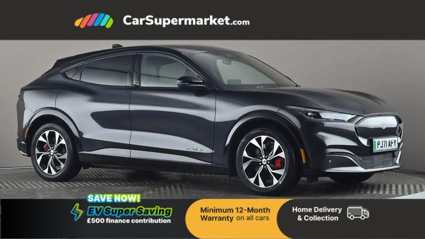 10.2" full digital cluster and 15.5" central touch screen,Applink remote control system,BLIS (Blind Spot Information System) with cross traffic alert,Distance alert system,Electric power steering,Emergency services call system,Ford pass connect embedded modem,Front and rear parking sensors,Intelligent adaptive cruise control with stop and go + lane centering,Lane departure warning with lane keeping aid,Next generation SYNC with connected navigation+DAB and natural voice search,Rear view camera,Selectable drive modes - active, whisper and untamed,Trip computer,Wireless device charging pad,Ford vario power charging cable,High power charging cable,3rd brake light,Adaptive LED Mustang signature headllamps,Black power folding door mirrors with Mustang logo projection puddle lamps,Blade front grille design,Body colour bumpers,Daytime running lights,LED signature tail lights,Privacy glass,Quickclear heated windscreen,Rear side wing doors,Rear wiper,Side cladding and wheel arches in piano black,3 seat bench in 2nd row,8 way power driver and passenger seats with lumbar - fore/aft/up/down/recline,Dual electronic automatic temperature control,Front headrests,Front trunk,Heated driver and front passenger seats,Heated steering wheel,One pedal drive,Perforated full sensico artificial leather upholstery,Rear head restraints,Single front passenger seat,3 point rear seatbelts,ABS,Child locks on rear doors,ESP,Evasive steering assist,Pre collision assist with Forward Collision Warning (FCW), Dynamic Brake Support (DBS), Autonomous Emergency Braking (AEB),Red brake callipers,E-Latch keyless entry system including B-Pillar keypad access,Thatcham Cat.1 alarm,19" Black machined alloy wheels,Dark Matter Grey,Perforated Sensico - Black with Red Stitching