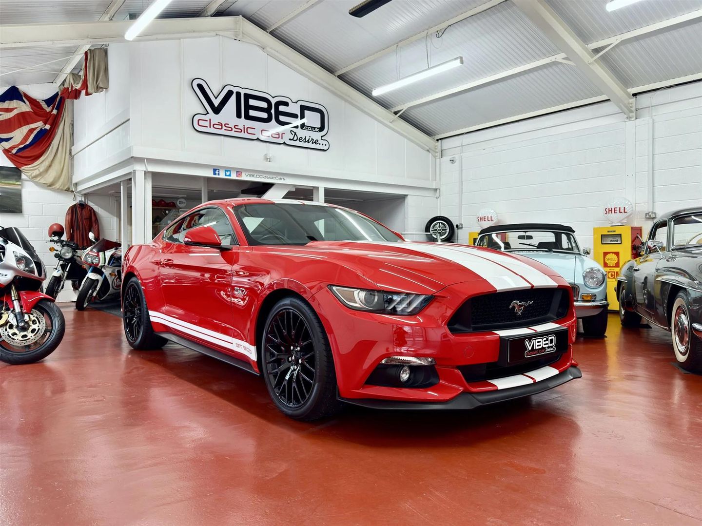 Here we have an opportunity to own a very desirable Ford Mustang 5.0 V8 GT Fastback in the best colour combination of Race Red with White Racing Decals...
