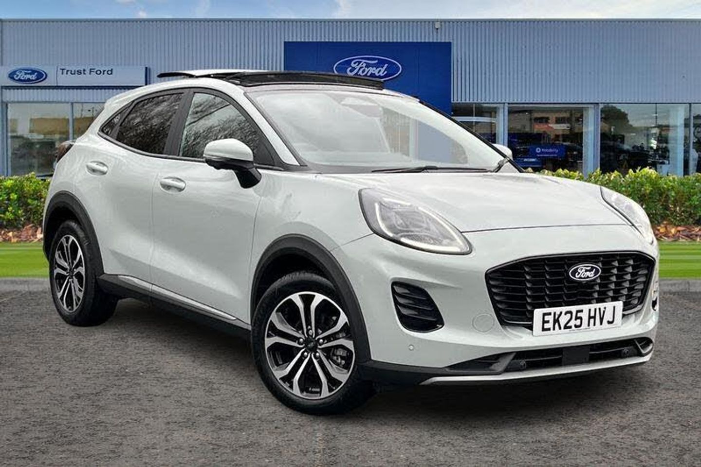 Driver impairment monitor, Emergency call service, Ford easy fuel, Full digital 12.8 instrument cluster, Lane keeping aid with lane departure warning, Power assist steering, Selectable drive modes(Normal, Eco, Sport, Slippery and Trail), Speed sign recognition, Automatic headlights with rain sensing wipers and auto high beam, Front fog lamps, LED daytime running lights, LED rear lamps, LED third brake light, Quickclear heated windscreen, Rear privacy glass, Rear side wing doors, Rear wiper, Titanium body styling kit, 3 seat bench in 2nd row, Centre console with armrest and stowage, Electronic automatic temperature control (EATC), Ford megabox extended bootspace, Front and rear head restraints, Front floor mats, Manual 4 way driver seat adjust with lumbar adjustment, Single front passenger seat, Titanium cloth upholstery, 3 rear seatbelts, Child safety lock, Electronic stability control (ESC) and hill start assist, Pre-collision assist with autonomous emergency braking, pedestrian/cyclist detection & post-collision braking, Tyre pressure monitoring system (TPMS)