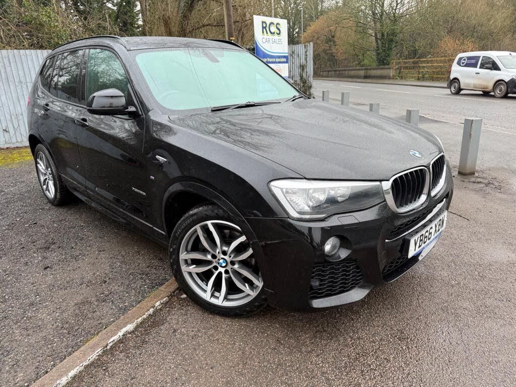 12V Power Socket - Centre Console, 12V Power Socket - Luggage Compartment, 19in Alloy Wheels - Light M Double-Spoke Style 622M, 6.5in Colour Display Screen, ABS - Anti Lock Braking System, ASC - Automatic Stability Control, Additional Detachable Cupholder, Air Conditioning - Automatic with Two-Zone Control, Air Microfilter, Airbags - Driver, Airbags - Driver and Front Passenger Side, Airbags - Front ITS Head, Airbags - Passenger, Airbags - Passenger Deactivation, Airbags - Rear ITS Head, Alarm System Thatcham 1 with Remote Control, Ambient Interior Lighting, Anti Roll Bars - Front and Rear, Armrest - Front with Storage Compartment, Armrest - Rear Centre, Automatically Dimming Rear View Mirror, Auxiliary Input, BMW ConnectedDrive Online Services, BMW Emergency Call, BMW Mobility System, BMW Navigation System, BMW Professional Radio - Single CD and MP3, BMW TeleServices, Bluetooth - Audio Streaming - with Compatible Devices, Bluetooth Hands Free Facility, Brake Drying, Brake Fade Compensation, Brake Force Display, Brake Pre-Tensioning, CBC - Cornering Brake Control, Central Locking - Doors Boot Fuel Cap via Remote Key, Child Proof Locking System - Rear Doors, Child Seat ISOFIX Attachment - Rear, Courtesy Lights - Front and Rear with Soft On-Off Dimming, Crash Sensor - Activating Central Locking-Hazard Warning Lights-Fuel Cut Off, Cruise Control with Brake Function, DAB Digital Radio, DBC - Dynamic Brake Control, DSC - Dynamic Stability Control - Stabilises the Vehicle in Extreme Situations - Controls Traction, DTC - Dynamic Traction Control, Daytime Running Lights, Door Handles - Body Colour, Door Mirrors - Body Coloured, Door Mirrors - Drivers Aspheric, Door Mirrors - Electric and Heated, Door Mirrors - Integrated Indicators - LED, Door Panels - Plastic - Beige, Door Sill Finishers - M Designation, Drive Performance Control - ECO PRO - Comfort - Sport - Sport Plus, EBD - Electronic Brake-Force Distribution, Electric Windows - Front and Rear with Open-Close Fingertip Control, Electro Mechanical Parking Brake, Embellishers for Instrument Panel - Black High-Gloss, Engine Immobiliser, Exhaust Tailpipe - Single Oval with Chrome Finisher, Exterior Trim - High-Gloss Shadowline, Favourite Buttons x8, First Aid Kit, Floor Covering - Tufted Velour - Dark Beige, Floor Mats - High-Pile - Beige Dark, Floor Mats - Velour, Follow Me Home Headlight Function, Footwell Lights - Front, Front Fog Lights, Glove Compartment - Illuminated, Glove-Box Lid - Plastic Grained - Beige, Grab Handles and Hooks - Beige, Grab Handles and Hooks - Sky Grey, Grab Handles with Coat Hooks, HDC - Hill Descent Control, Halogen Headlights, Head Restraints - Front and Rear, Head Restraints - Height and Angle, Headlights - Automatic Activation, Headlights - Height Adjustment, Headlining - Anthracite, Headrests - Active Front, Heated Windscreen Washer Jets, High Level Third Brake Light, Hill Start Assist, Incorrect Fuelling Protection System, Indicator Lenses - Clear, Instrument Panel - Lower Section - Plastic Grained - Beige, Interior Trim - A Pillar - Upper Section - Finished Fabric - Beige, Interior Trim - B Pillar - Lower Section - Plastic - Beige, Interior Trim - B Pillar - Upper Section - Finished Fabric - Beige, Interior Trim - Brushed Aluminium, Interior Trim - C Pillar - Upper Section - Finished Fabric - Beige, Interior Trim - D Pillar - Upper Section - Finished Fabric - Beige, Kidney Grille - Chrome with Black Vertical Slats, Lashing Rails and Four Lashing Eyes, Locking Wheel Bolts, Luggage Compartment - Additional Storage on Each Side and Under Floor, Luggage Compartment - Floor Inserts - Anthracite, Luggage Compartment - Illuminated with Four Lashing Eyes in Boot Floor, Luggage Compartment - Removable Cover, Luggage Compartment Lining - Carpet - Anthracite, M Aerodynamic Bodystyling, M Sport Package, M Sport Steering Wheel, M Sport Suspension, Media Package - BMW Business, Model Designation - X3 on Tailgate and Drive designation on Left and Right Front Side P