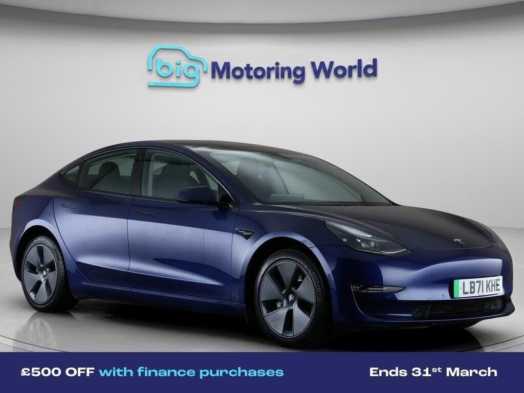 £500 towards your finance depo-Our Tesla Model 3 is finished in Blue. Specification includes a range of fantastic features including £500 towards your finance deposit, Panoramic Roof, All Wheel Drive, Leather Seats, Apple CarPlay, Adaptive Cruise Control, Android Auto, Satellite Navigation, Heated Seats, Wireless Phone Charging Specification information is supplied by CAPHPI and may vary to the actual car. This data does not form any part of a buying contact. Please check specification prior to purchase in-store. The MOT is valid until December 2026, visit bigmotoringworld.co.uk for more photos, a 360 tour, service history and a free HPI report.Were BIG on peace of mind and this Blue Tesla Model 3 has completed our comprehensive 200 point inspection and passed all checks. Its ready for you to drive away with immediate collection in-store. We include a 90-day warranty as standard plus an option to extend for up to 3 years.Reserve this car exclusively for you, safely and securely at bigmotoringworld.co.uk, with a fully refundable £99 deposit. Test drive before you buy, with no commitment, no hassle and a completely haggle free experience. Still searching and want to see thousands more cars? We are BIG on choice with over 8000 cars to choose from.Visit our award winning web site bigmotoringworld.co.uk.Were Big Motoring World and were BIG on what matters to you.