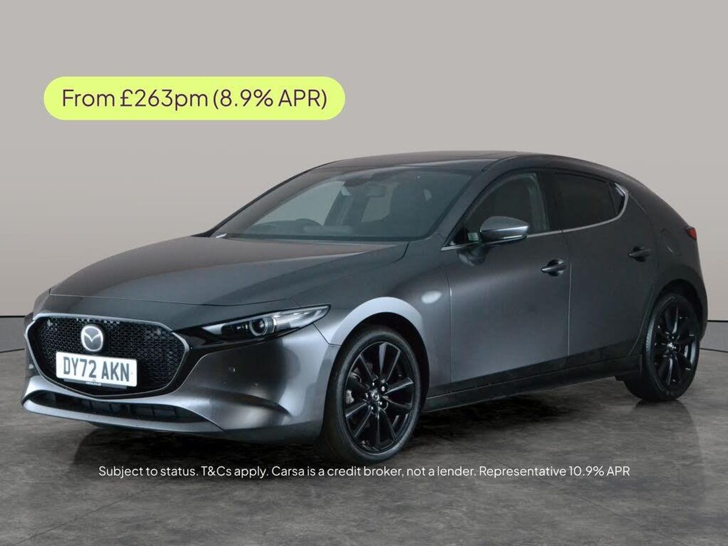 Experience the stylish Mazda3 in elegant grey, packed with premium features. Options include a sunroof for airy drives and a head-up display for cutting-edge convenience. Enjoy modern living with Apple CarPlay, keyless entry, LED headlights and adaptive headlights for outstanding clarity. Comfort is enhanced with heated seats and safety is prioritised with blind spot assist, lane departure warning, and traffic sign recognition. Stay effortlessly connected with Bluetooth and navigate with ease using built-in sat nav and a reversing camera. 3 services recorded, last serviced on 23/08/2025 at 8,067 miles. MOT to 05/09/2026. Visit our website for service history, online valuation, full vehicle specification plus multiple images. This vehicle is VAT qualifying. Any feature/option specified here is from 3rd party data. We cannot guarantee the accuracy of any specification supplied by a 3rd party. We recommend that you physically check the specification of the vehicle on site prior to purchase. This information does not form part of the buying contract. Terms & Conditions apply. We have over 2,000 cars available from our 10 national branches, check our website to see all our stock. Our Trustpilot rating is 4.4/5 with over 9,000 reviews.