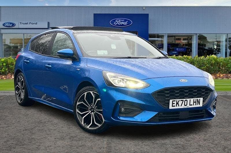 12.3 Digital instrument cluster, Bluetooth system, Digital clock, E-call, Easy fuel capless refuelling system, Eco mode, Ford SYNC 3 navigation with 8 TFT touchscreen, DAB radio and app link Android auto/Apple carplay, Intelligent speed assist, Lane keeping system - lane keeping alert and lane keeping aid, PAS, Selectable drive mode, Trip computer, Auto dimming rear view mirror, Auto headlamps (on/off), Automatic rain sensing wipers, Body colour large rear spoiler, Body coloured bumpers, Body coloured door handles, Body coloured electrically operated and heated door mirrors with side indicators, Electrically operated front and rear windows with one touch opening and closing, Front variable intermittent wipers with electric wash, Heated rear window, LED daytime running lamp, Polished twin tailpipe, Power folding door mirrors with puddle lights, Quickclear heated windscreen, Rear privacy glass, Rear side wing doors, ST-Line upper and lower grille with full body styling kit and wing badges, Tailgate wash/wipe, Third brake light, Unique door and instrument panel inserts, 3 seat bench in 2nd row, 3 spoke flat bottomed Sensico steering wheel with red stitching, 6 way power adjustable driver seat, Aluminium gear knob, Dark headliner, Driver's lumbar support, Dual zone electronic air temperature control, Front and rear floor mats with red stitching, Heated driver and front passenger seats, Heating for Sensico steering wheel, Height adjustable front headrests, Isofix child seat preparation, Reach + rake adjustable steering column, Rear centre headrest, Sensico premium upholstery, Single front passenger seat, Soft console knee pads with red stitching, 3x3 point rear seatbelts, ABS+Electronic Brake force Distribution, Auto hold function, Driver airbag, Electronic parking brake, Electronic stability control, Front and rear seatbelt reminder, Front inertia reel height adjustable seatbelts with pre-tensioners, Front passenger airbag, Front side airbags, Hill start assist, Passenger airbag deactivate switch, Post collision braking, Pre collision assist with autonomous emergency braking and pedestrian/cyclist detection, Remote/power child rear door locks, Side curtain airbags, Three rear inertia reel lap/diagonal seatbelts, Tyre pressure monitoring system