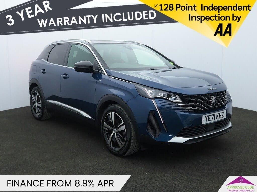 This 2021 Peugeot 3008 GT boasts a long MOT, offering excellent peace of mind. This stylish SUV is equipped with a 1.2 litre Euro 6 petrol engine, providing an impressive fuel economy of 46 miles per gallon. The GT trim level ensures a premium experience, featuring a PEUGEOT Open and Go system for effortless keyless entry, and automatic dual zone climate control to keep all occupants comfortable. Further enhancing your driving experience, this 3008 GT includes full LED headlights with static cornering lighting for superior visibility, and electric door mirrors with blind spot detection and an auto dipping function in reverse. Parking is made simpler with the rear parking aid and rear sensor system. You will also appreciate the generous boot space, perfect for all your luggage and shopping needs, making this Peugeot 3008 GT a practical and well appointed choice. Oakwood Motor Company are an established family run dealership, home of the best used cars in Bury! We have hundreds of cars currently in stock from all your favourite brands including our specialist selection of Audi VW Group vehicles. Our fantastic rates are available on both HP and PCP finance, and we have extended warranties available for up to 3 years for complete peace of mind. Our experienced sales team are on hand to help you every step of the way, so give us a call today to reserve your new car with a refundable £100 deposit. Visit our used car dealership in Bury! We take all reasonable steps to ensure the accuracy of the information supplied in our advertising materials, however on occasion errors may occur. Images used are for illustrative purposes only. Please ensure you take the time to fully inspect your vehicle for specification/features which are important to you, and raise any queries with your Sales Executive.