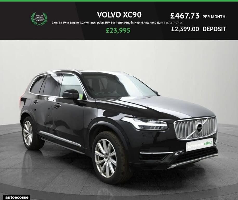 Volvo XC90 2.0h T8 Twin Engine 9.2kWh Inscription SUV 5dr Petrol Plug-in Hybrid Auto 4WD Euro 6 (s/s) (407 ps)