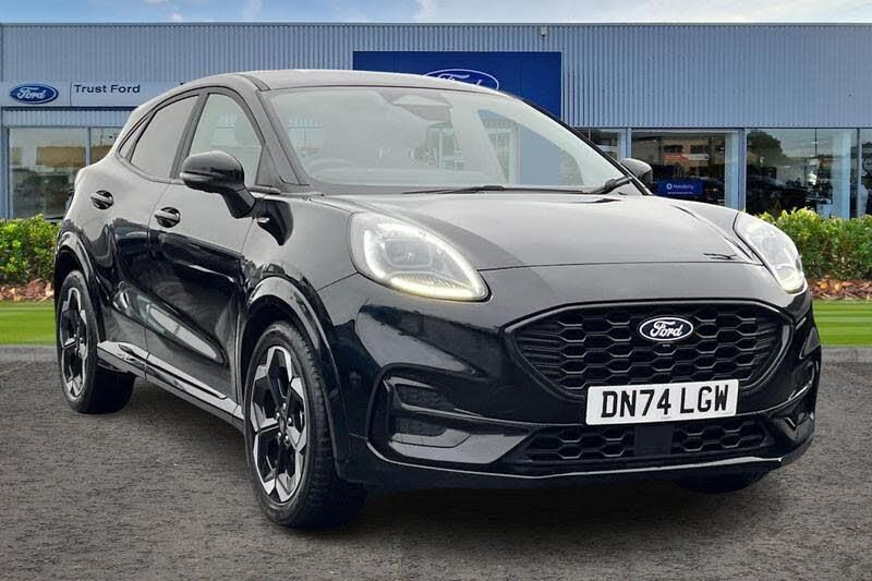 Driver impairment monitor, Emergency call service, Ford easy fuel, Full digital 12.8 instrument cluster, Lane keeping aid with lane departure warning, Power assist steering, Selectable drive modes(Normal, Eco, Sport, Slippery and Trail), Speed sign recognition, Automatic headlights with rain sensing wipers and auto high beam, Front fog lamps, LED daytime running lights, LED rear lamps, LED third brake light, Power foldable heated door mirrors with puddle lamps and puma logo protection, Quickclear heated windscreen, Rear privacy glass, Rear side wing doors, Rear wiper, ST-Line X body styling kit, 3 seat bench in 2nd row, 4 way lumbar support for passenger seat, Centre console with armrest and stowage, Electronic automatic temperature control (EATC), Ford megabox extended bootspace, Front and rear head restraints, Front floor mats, Manual 4 way driver seat adjust with lumbar adjustment, Single front passenger seat, ST-Line X Premium synthetic leather upholstery, 3 rear seatbelts, Child safety lock, Electronic stability control (ESC) and hill start assist, Pre-collision assist with autonomous emergency braking, pedestrian/cyclist detection & post-collision braking, Tyre pressure monitoring system (TPMS)