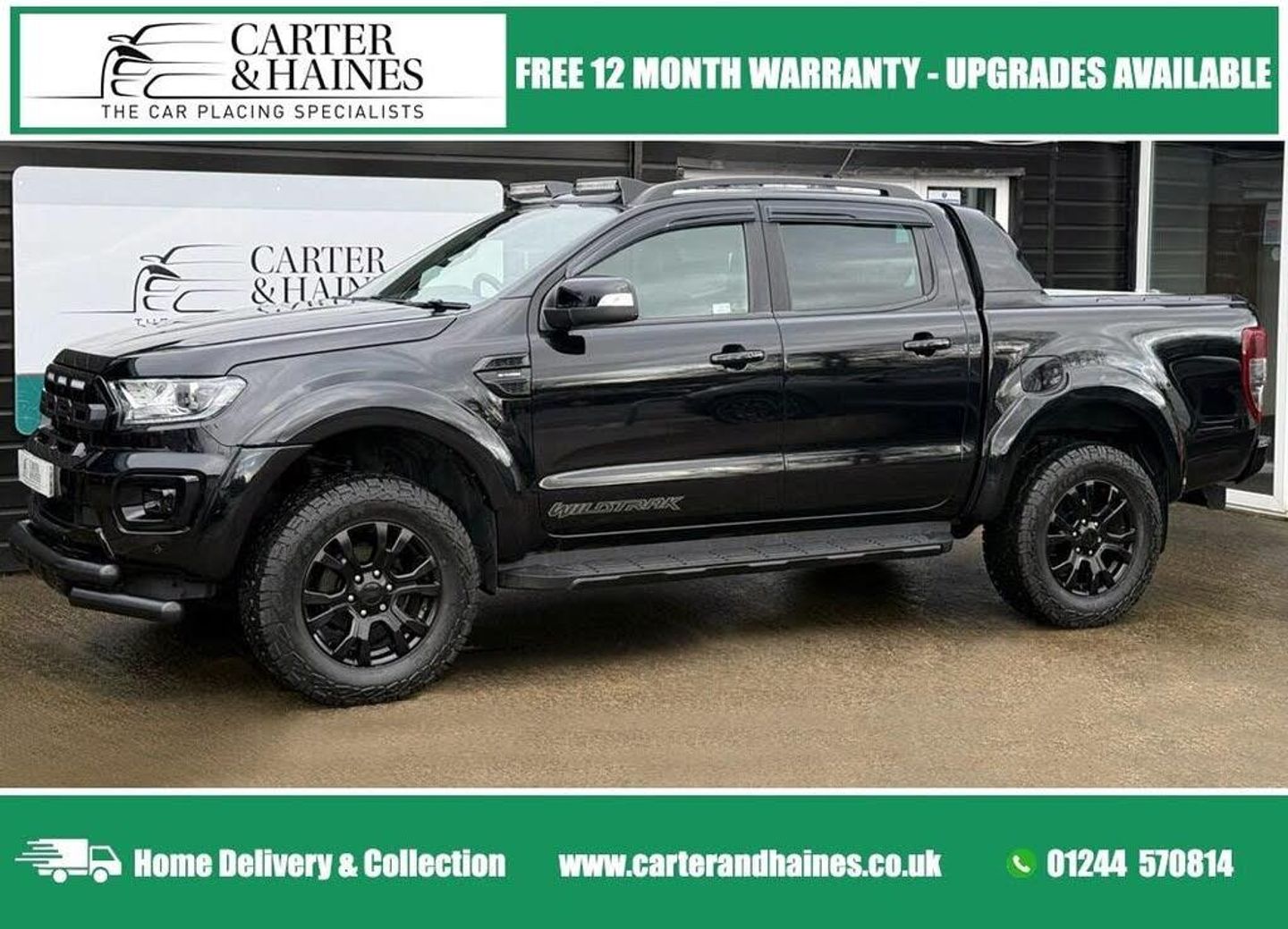Ford Ranger 2.0 EcoBlue Wildtrak Pickup Double Cab 4dr Diesel Auto 4WD Euro 6 (s/s) (213 ps) Double Cab Pickup with a Premium Feel. This Ford Ranger Wildtrak Pickup is finished in Agate Black with Extras Like Gloss Black 20in Alloy Wheels, Arch Extensions, Ford Raptor Style Grill, Lower Spoiler Bar. Also features Factory Power Roller Shutter, Trailer Tow Pack, Locking Rear Axle, Side Steps, Cruise Control, Rear View Camera, Rear Parking Sensors, Front Parking Aid, Ford SYNC 3, Heated Front Seats, Dual-Zone Climate Control, LED Headlights, and Privacy Glass. This Used Ford Ranger Wildtrak Pickup has had Two former keeper (3 in Total). With a timing Belt Replacement and Service Done in October 2025 on 49,685 miles. ************************************************************************** DETAILS This Ford Ranger Wildtrak Pickup is 4 Wheel Drive . It has an automatic gearbox. It has two keys with remote central locking. ************************************************************************** SPEC Ford Ranger Wildtrak Pickup has Extras Like 20in Alloy Wheels, Arches and Grill. Also features Trailer Tow Pack, Locking Rear Axle, Side Steps, Cruise Control, Rear View Camera, Rear Parking Sensors, Front Parking Aid, Ford SYNC 3, Heated Front Seats, Dual-Zone Climate Control, LED Headlights, and Privacy Glass. (See Specification Tab for Full Spec) ************************************************************************** MILES This Ford Ranger Wildtrak Pickup has covered around 49,838 miles from new. It was first registered in August 2021 ************************************************************************** CONDITION The car is in great condition as can be seen in the photos with a some minor marks that are in line with the age and mileage of the car. A Youtube Video of the car is attached. The interior is very clean. ************************************************************************** ABOUT US Secure this car with a £250 deposit now prior to viewing to ensure you dont miss it. We pride ourselves on giving five star service. Check out our reviews on Auto Trader and Google. Contact via our phone numbers or WhatsApp on our website www.carterandhaines.co.uk