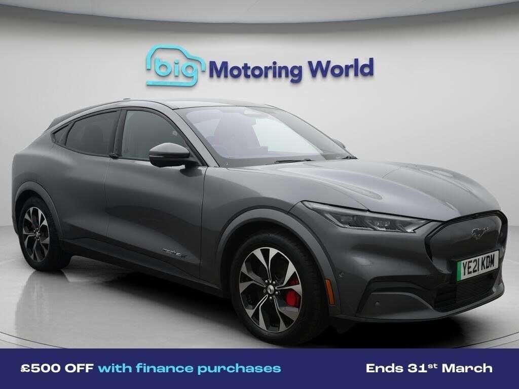 £500 towards your finance depo-Our Ford Mustang Mach-E is finished in Grey. Specification includes a range of fantastic features including £500 towards your finance deposit, Panoramic Roof, 19'' Alloy wheels, Leather Seats, Apple CarPlay, Adaptive Cruise Control, Bang & Olufsen Speakers, Premium Sound System, Privacy Glass, Rear View Camera Specification information is supplied by CAPHPI and may vary to the actual car. This data does not form any part of a buying contact. Please check specification prior to purchase in-store. The MOT is valid until July 2026, visit bigmotoringworld.co.uk for more photos, a 360 tour, service history and a free HPI report.Were BIG on peace of mind and this Grey Ford Mustang Mach-E has completed our comprehensive 200 point inspection and passed all checks. Its ready for you to drive away with immediate collection in-store. We include a 90-day warranty as standard plus an option to extend for up to 3 years.Reserve this car exclusively for you, safely and securely at bigmotoringworld.co.uk, with a fully refundable £99 deposit. Test drive before you buy, with no commitment, no hassle and a completely haggle free experience. Still searching and want to see thousands more cars? We are BIG on choice with over 8000 cars to choose from.Visit our award winning web site bigmotoringworld.co.uk.Were Big Motoring World and were BIG on what matters to you.