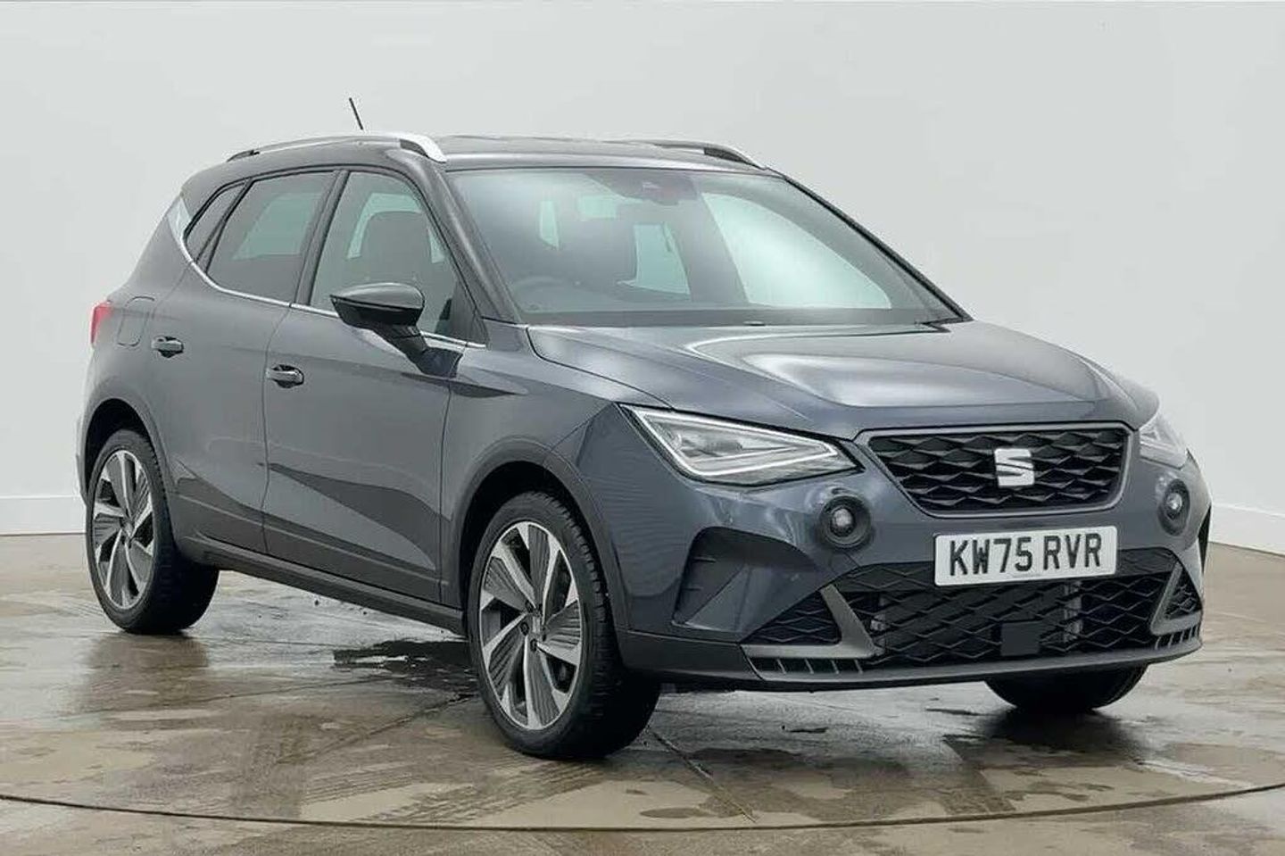 Paint - Metallic, Metallic - Magnetic tech grey with black roof, Exterior Features, Dark tinted rear windows, Electric front/rear windows, Rain sensing wipers, Rear window wash/wipe, Anti theft roof antenna, Body coloured bumpers, Body coloured door handle inserts, Chrome roof rails and window surrounds, Protective side mouldings, Rear side wing doors, Rear spoiler, Twin exhaust pipe styling hidden exhaust pipe, Visible VIN plate, Automatic activation of hazard warning lights, Front fog lights with cornering function and rear fog light, FULL LED automatic headlights with dynamic headlight range control, coming and leaving home, LED daytime running lights, LED rear tail lights and licence plate lights, Third brake light, Safety, ABS, Emergency Brake Assist (EBA) and front assist, Hill hold control, Multi-Collision braking, Traction control, Electric speed sensitive power steering, Lane keeping system, SEAT Drive profile - Four different models normal-sport-eco-individual, steering response, throttle response and gear shifts mode, Auto dimming interior rear view mirror, Electrically adjustable, heated and folding door mirrors, Roof colour door mirrors, 3 point seatbelts on all rear seats, Active front headrests, Child locks on rear doors, Driver and front passenger airbags with front passenger airbag de activation, front side and curtain airbags, Front and rear seatbelt reminder, Tiredness recognition system, Tyre pressure monitoring system, Audio / Communications, E-call, 9.2" colour touchscreen with navigation system, voice control and USB port (type c), Bluetooth interface for hands free and audio streaming, DAB digital radio and AM/FM radio, Steering wheel mounted audio controls, Driver Convenience, Wireless phone charger, Miscellaneous, 'Lights On' Reminder warning buzzer, 10" Digital cockpit, Digital clock, Full link smartphone integration with mirror link, wireless apple carplay, Google android auto + USB Type C cable for apple and android devices, Low fuel warning light, Outside temperature display, RPM counter, Trip computer, Trim, Titan black dashboard, 3 seat bench in 2nd row, 60/40 split folding rear seat, Front comfort seats, Front seat back storage pockets, Heated front seats, Height adjustable front seats, ISOFIX points in outer rear seats with top tether anchorage points, Single front passenger seat, Two front and three rear height adjustable headrests, Interior Features, Aircare filter, Dual zone climate control, 2 cupholders, Black interior roof, Double boot floor, Gear shift indicator, Height/reach adjustable steering column, Illuminated air vent surrounds, Microsuede cloth upholstery, Perforated flat bottomed leather steering wheel/gear knob/handbrake with red stitching and FR logo, Potentiometer, Steering wheel mounted gearshift paddles, Front courtesy light with front reading lights, Illuminated boot, Instrument lighting with brightness control, Interior ambient lighting, Interior light in footwell, central console and door panel, Driver sunvisor with covered mirror + card holder, Passenger sunvisor with vanity mirror, Packs, Interior chrome pack - Arona, Safe and driving pack (S) - Arona, Security, Alarm with back up horn with tow away protection, Deadlock, Electronic engine immobiliser, Locking wheel bolts, Remote central locking, Wheels, 18" Performance Cosmo grey matt alloy wheels