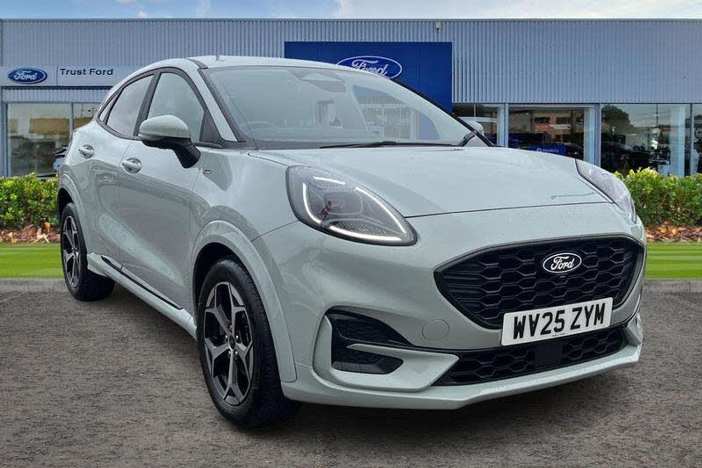 Driver impairment monitor, Emergency call service, Ford easy fuel, Full digital 12.8 instrument cluster, Lane keeping aid with lane departure warning, Power assist steering, Selectable drive modes(Normal, Eco, Sport, Slippery and Trail), Speed sign recognition, Automatic headlights with rain sensing wipers and auto high beam, Front fog lamps, LED daytime running lights, LED rear lamps, LED third brake light, Power foldable heated door mirrors with puddle lamps and puma logo protection, Quickclear heated windscreen, Rear privacy glass, Rear side wing doors, Rear wiper, ST-Line body styling kit with unique grille, 3 seat bench in 2nd row, Centre console with armrest and stowage, Electronic automatic temperature control (EATC), Ford megabox extended bootspace, Front and rear head restraints, Front floor mats, Manual 4 way driver seat adjust with lumbar adjustment, Single front passenger seat, ST- Line cloth trim with red stitching, 3 rear seatbelts, Child safety lock, Electronic stability control (ESC) and hill start assist, Pre-collision assist with autonomous emergency braking, pedestrian/cyclist detection & post-collision braking, Tyre pressure monitoring system (TPMS)