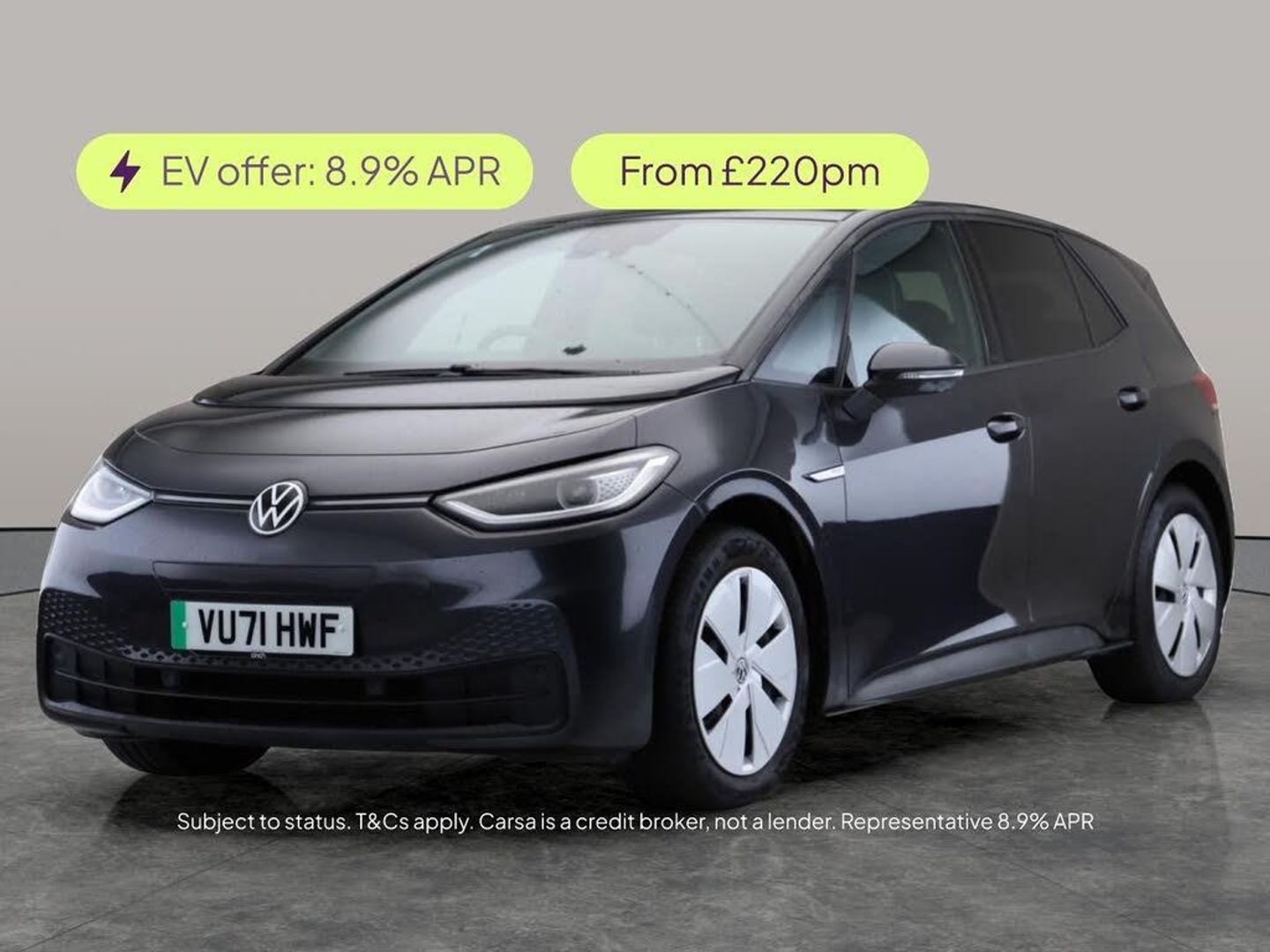 Experience the future with this stylish grey Volkswagen ID.3. Enjoy effortless journeys with Adaptive Cruise Control, Blind Spot Assist, and the added ease of front and rear parking sensors. Stay comfortable on every drive thanks to the Comfort Pack, and keep connected with seamless Bluetooth integration. This all-electric hatchback is ready to impress with its smooth automatic drive and practical five-door design. Drive away in innovation and comfort today. 1 service recorded, last serviced on 17/05/2024 at 31,370 miles. MOT to 09/10/2026. Visit our website for service history, online valuation, full vehicle specification plus multiple images. This vehicle is VAT qualifying. Any feature/option specified here is from 3rd party data. We cannot guarantee the accuracy of any specification supplied by a 3rd party. We recommend that you physically check the specification of the vehicle on site prior to purchase. This information does not form part of the buying contract. Terms & Conditions apply. We have over 2,000 cars available from our 10 national branches, check our website to see all our stock. Our Trustpilot rating is 4.4/5 with over 9,000 reviews.