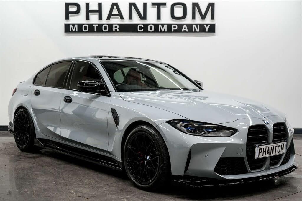 STRICT APPOINTMENT ONLY, 2025 AUTOTRADER HIGHLY RATED AWARD WINNER, LOW RATE FINANCE. Nationwide delivery available. Finished in the exquisite Brooklyn Grey we have a BMW M3 Competition. This vehicle has just two previous owners and comes with BMW services at; 1k, 14k, 30k and 36k. 5 years guarantee with lifetime MOTs available. Our M3 comes kitted with a plethora of premium features such as; Maxton design body kit, Carbon fibre rear spoiler, Carbon fibre roof, Privacy glass, 19in Front - 20in Rear Alloy Wheels, Visibility Pack, Full Merino Bicolour Leather - Black-Kyalami Orange, Adaptive M Suspension, Air Conditioning - Automatic with Three-Zone, Ambient Lighting, Connected Package Professional, Control Display - 10.25in Colour Display Screen, Cruise Control with Brake Function, Dynamic Stability Control, Dynamic Brake Lights, Interior Trim - Carbon Fibre, Kidney Grille with Frameless High Gloss and Model Badging, LED Headlights, LED Taillights with New 3D L-Shaped LED Light Design, Loudspeaker System - Harman Kardon, M Head-Up Display, M Seat Belts, M Servotronic, M Sport Differential, M Sport Seats, Seat Adjustment - Front Electric with Driver Memory, Reverse assist camera, Heated front seats, Tyre Pressure Monitoring System. The BMW M3 Competition is a high-performance vehicle that epitomises power and precision. Equipped with a 3.0L engine, it produces a staggering power, enabling a 0-60 mph acceleration in a matter of seconds. Call or email us to book a viewing at our indoor heated showroom.