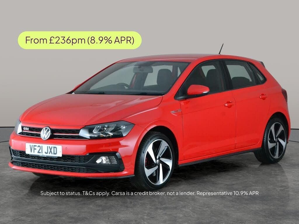 Experience sporty style and performance with this vibrant red Volkswagen Polo GTI. Enjoy high-tech features like Apple CarPlay, sat nav, and Bluetooth audio streaming for seamless connectivity on every journey. LED headlights light up your way, while front and rear parking sensors make city driving and parking effortless. With paddle shift for dynamic driving and 17in alloy wheels adding to its striking look, this Polo GTI makes every drive exciting and comfortable with climate control and air conditioning. 2 services recorded, last serviced on 12/02/2026 at 43,840 miles. MOT to 11/02/2027. Visit our website for service history, online valuation, full vehicle specification plus multiple images. This vehicle is VAT qualifying. Any feature/option specified here is from 3rd party data. We cannot guarantee the accuracy of any specification supplied by a 3rd party. We recommend that you physically check the specification of the vehicle on site prior to purchase. This information does not form part of the buying contract. Terms & Conditions apply. We have over 2,000 cars available from our 10 national branches, check our website to see all our stock. Our Trustpilot rating is 4.4/5 with over 9,000 reviews.