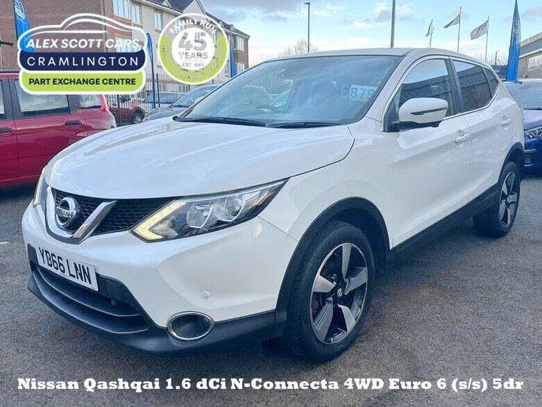 This 2016 Nissan Qashqai dCi N Connecta offers exceptional value with its remarkably low mileage of just 65,000 miles for its age. This Euro 6 compliant, four wheel drive model is powered by an efficient 1.6 litre diesel engine. It comes with a partial service history and will be provided with a full 12 months MOT for your peace of mind. The N Connecta trim level ensures a comfortable and connected driving experience, featuring Dual Zone Climate Control Air Conditioning, Bluetooth connectivity, and the convenience of Intelligent Keyless Entry.Further enhancing its appeal, this Qashqai includes the Tech Pack, which adds a 360 degree camera for effortless parking assistance, and the Smart Vision Pack, providing front and rear parking sensors. These features, combined with its impressive fuel economy of 58 mpg, low insurance group, and low CO2 emissions, demonstrate how this vehicle stands out from others in its class.-ONLY 65000 MILES!!! 2xKEYS!!!-ALEX SCOTT CARS GUIDEPOST Award Winning Family Run Business Since 1981 TEL 01670 823777