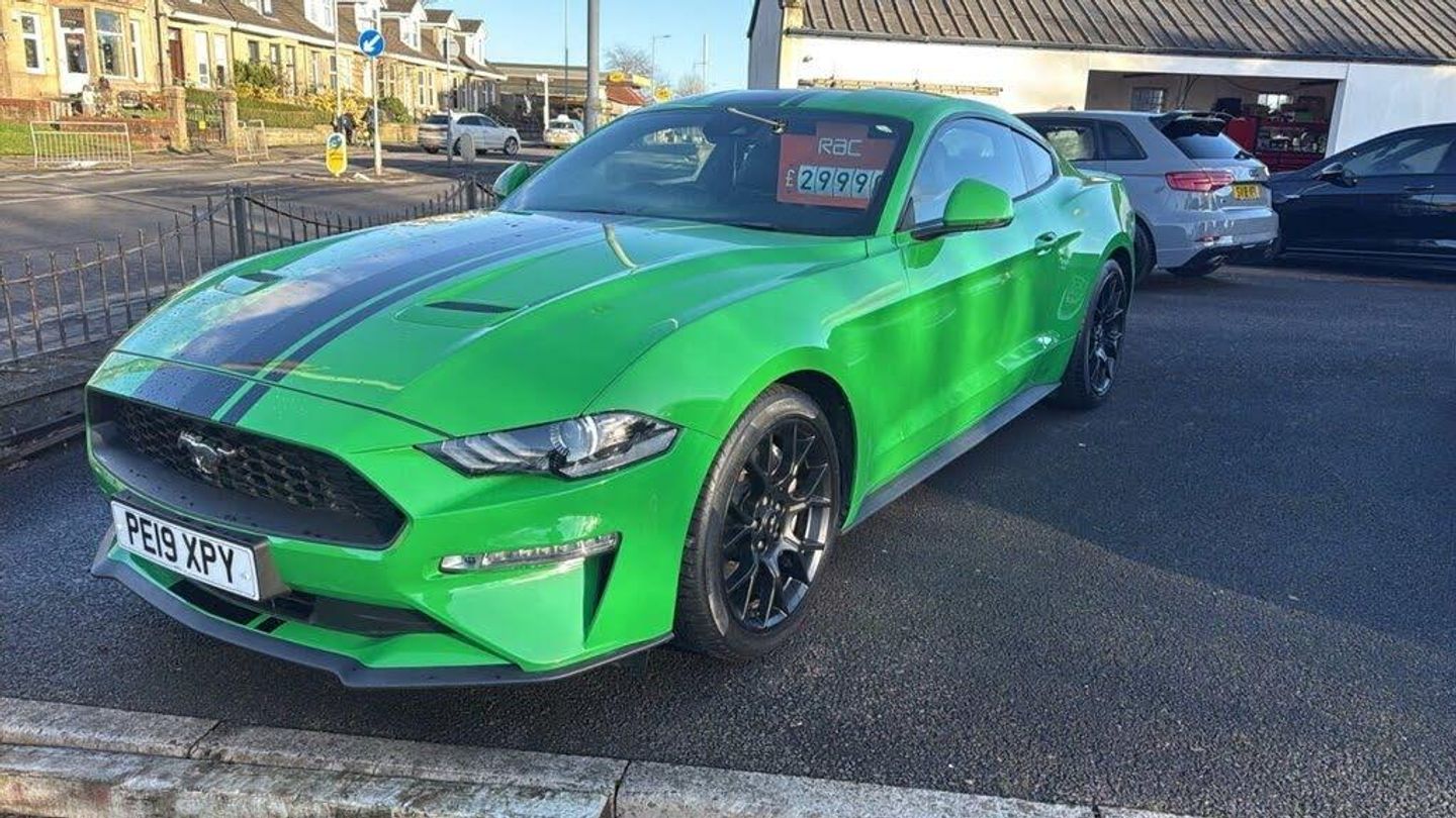 Here we have a stunning Mustang 2.3 Ecoboost Fastback Auto 290bhp (Euro 6) in Need for Green with Black Leather Interior . The Car has covered only 25000 miles and has a good maintenance history . Options include 19" Black Alloys , Multi Function Steering Wheel with Paddle Shift , Bluetooth with Touch Screen Sat Nav (Ford SYNC3) , Electric folding Mirrors , Keyless Go , Heated and Cooling Seats , Park Distance Control , Digital Dash , Climate Control , Cruise Control , DAB , Electric Seats and Front Fogs . The car will come with 6 months RAC Warranty , 12 Months RAC Roadside Assistance . Part Exchange is welcome . Call us today on 01417781692 to secure or enquire further