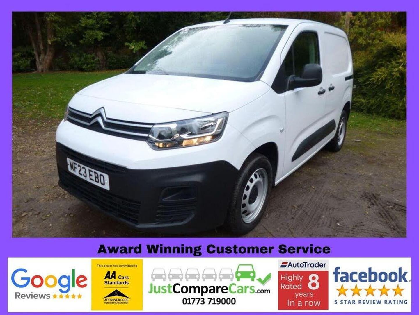 Features: 12V Socket in Dashboard,16in Steel Wheels with Black Centre Cap,6 Floor-Mounted Load Securing Rings,8in Colour Touchscreen with Citroen Connect DAB Radio - Bluetooth Handsfree - USB Socket,Air Conditioning,Airbags - Driver,Alarm - Parametric and Volumetric - Thatcham Category 1 Approved Alarm with Tilt Sensor,Automatic Activation of Hazard Warning Lights on Major Deceleration,Citroen Connect Box with Emergency and Assistance System,Cruise Control with Programmable Speed Limiter,Cup Holders for Driver and Passenger on Either Side of the Dashboard,Dashboard Mounted Central Locking Push Buttons and Auto Locking Above 7 MPH,Door Opening Warning Light and Audible Lights-On Warning,Driver and Passenger Seatbelt Unfastened Warning,Drivers Seat - 4-Way Adjuctable with Adjustable Headrests,Electric Power Assisted Steering with Reach and Rake Adjustable Steering Column,Electric Windows - Front with One Touch Operation,Electrically Adjustable Door Mirrors with Temperature Sensor,ESC with Hill Start Assist - ABS Braking including EBA and EBFD,Free2Move Connect Fleet Telematics (6 Month Subscription From New),Front Door Pockets with 1.5L Bottle Holders,Full Bulkhead Compliant with ISO27956,Hard Plastic Floor Protection in Cabin,Height Adjustable Halogen Headlights,High Level Third Brake Light,Lockable Fuel Cap,Manual Folding Exterior Mirrors,Manual Parking Brake,Mirror Screen - Apple CarPlay - Android Auto,Multi-Function On-Board Trip Computer,Nearside Side Sliding Door,Overhead Storage Shelf in Cabin,Puncture Repair Kit,Remote Central Locking with Deadlocks,Rev Counter with Maintenance and Gear Efficiency - GEI - Indicators,Rolling Code Transponder Immobiliser,Side Rubbing Strips,Single Passenger Seat,Top Box Storage Compartment,Two-Speed and Intermittent Front Wipers,Tyre Pressure Monitor,Unglazed Asymmetric Rear Doors Opening to 180 Degrees,Visible VIN at Base of Windscreen,8in Colour Touchscreen with Citroen Connect Navigation and DAB Radio - Bluetooth Handsfree - USB Socket,Comfort Pack,Rear Parking Sensors