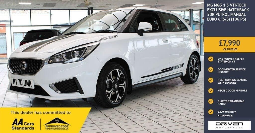 MG MG3 1.5 VTI-TECH EXCLUSIV FINISHED IN ARTIC WHITE AND COMPLIMENTED WITH BLACK PART LEATHER INTERIOR, THIS VEHICLE HAS BEEN VERY WELL CARED FOR AND MAINTAINED WITH DOCUMENTED SERVICES AT 10073, 26832 MILES PLUS COMPREHENSIVE PRE DELIVERY HEALTH CHECK AND SERVICE COMPLETED PRIOR TO SALE 40601 MILES. KEY FEATURES INCLUDE ALLOY WHEELS, REAR PARKING SENSORS WITH REVERSE CAMERA, BLUETOOTH, CRUISE CONTROL, DAB RADIO, MEDIA CONNECTIVITY, TOUCH COLOUR SCREEN, AIR CONDITIONING, USB PORT, HEATED DOOR MIRRORS PLUS MUCH MORE. COMMITTED TO AA CARS STANDARDS: 3 MONTHS OR 3000 MILES WARRANTY INCLUDED WITH AN OPTION TO UPGRADE: 12 MONTHS AA BREAKDOWN RECOVERY INCLUDED: £75.00 CONTRIBUTION TOWARDS YOUR NEXT SERVICE/MOT AT ANY AA CARS STANDARD APPROVED WORKSHOP: WE STAND BY THE QUALITY OF OUR VEHICLES. WITH THE PURCHASE OF THIS VEHICLE, YOU WILL RECEIVE 3 MONTHS OR 3000 WARRANTY, 12 MONTHS AA BREAKDOWN RECOVERY, GIVING YOU ADDITIONAL PEACE OF MIND AND PROTECTION. ALL OUR CARS COME WITH AT LEAST 6 MONTHS MOT AND PRE SALE HEALTH CHECK AND ROAD TEST. OUR PROFESSIONAL TEAM ENSURES YOUR VEHICLE STAYS IN TOP CONDITION, AND YOU ENJOY A HASSLE-FREE OWNERSHIP EXPERIENCE. 4.6 STARS ON GOOGLE WITH OVER 550 REVIEWS: JOIN OUR COMMUNITY OF SATISFIED CUSTOMERS! OUR DEALERSHIP IS PROUD TO HAVE A 4.6 STAR RATING ON GOOGLE, BACKED BY OVER 550 POSITIVE REVIEWS. WE ARE COMMITTED TO PROVIDING EXCELLENT SERVICE AND HIGH-QUALITY VEHICLES. This Vehicle Comes Equipped with High Specification, Which Includes: - Drive this car home with complete confidence and satisfaction: All cars proudly offered by driven group are rigorously inspected, hpi checked and prepared to the highest standard To drive this car home, visit www.drivegroup.co.uk or call 01642-601999 to arrange an appointment with our sales team Please note we do not operate an organised distance selling scheme as defined by the consumer contracts (cancellation, information and additional charges) regulations 2013. Therefore, even if you choose to not view your vehicle at our premises prior to purchase,you will not be entitled to cancel your order under any 14 day cancellation period. All other statutory rights remain unaffected. Whilst every effort has been made to ensure the accuracy of the information contained in this website, please check with us about any item which may affect your decision to purchase. Driven motor group shall not be liable for any errors, inaccuracies or delays in content.