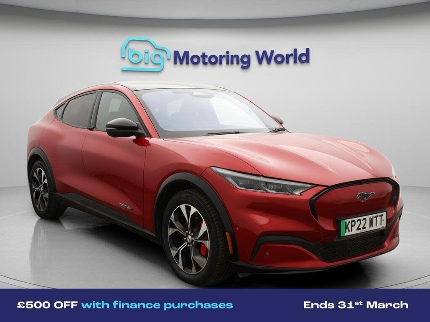 £500 towards your finance depo-Our Ford Mustang Mach-E comes with optional extras worth £1,150. Specification includes a range of fantastic features including £500 towards your finance deposit, Panoramic Roof, All Wheel Drive, 19'' Alloy wheels, Leather Seats, Apple CarPlay, Adaptive Cruise Control, Bang & Olufsen Speakers, Android Auto, Ford SYNC Specification information is supplied by CAPHPI and may vary to the actual car. This data does not form any part of a buying contact. Please check specification prior to purchase in-store. The MOT is valid until February 2027, visit bigmotoringworld.co.uk for more photos, a 360 tour, service history and a free HPI report.Were BIG on peace of mind and this Red Ford Mustang Mach-E has completed our comprehensive 200 point inspection and passed all checks. Its ready for you to drive away with immediate collection in-store. We include a 90-day warranty as standard plus an option to extend for up to 3 years.Reserve this car exclusively for you, safely and securely at bigmotoringworld.co.uk, with a fully refundable £99 deposit. Test drive before you buy, with no commitment, no hassle and a completely haggle free experience. Still searching and want to see thousands more cars? We are BIG on choice with over 8000 cars to choose from.Visit our award winning web site bigmotoringworld.co.uk.Were Big Motoring World and were BIG on what matters to you.