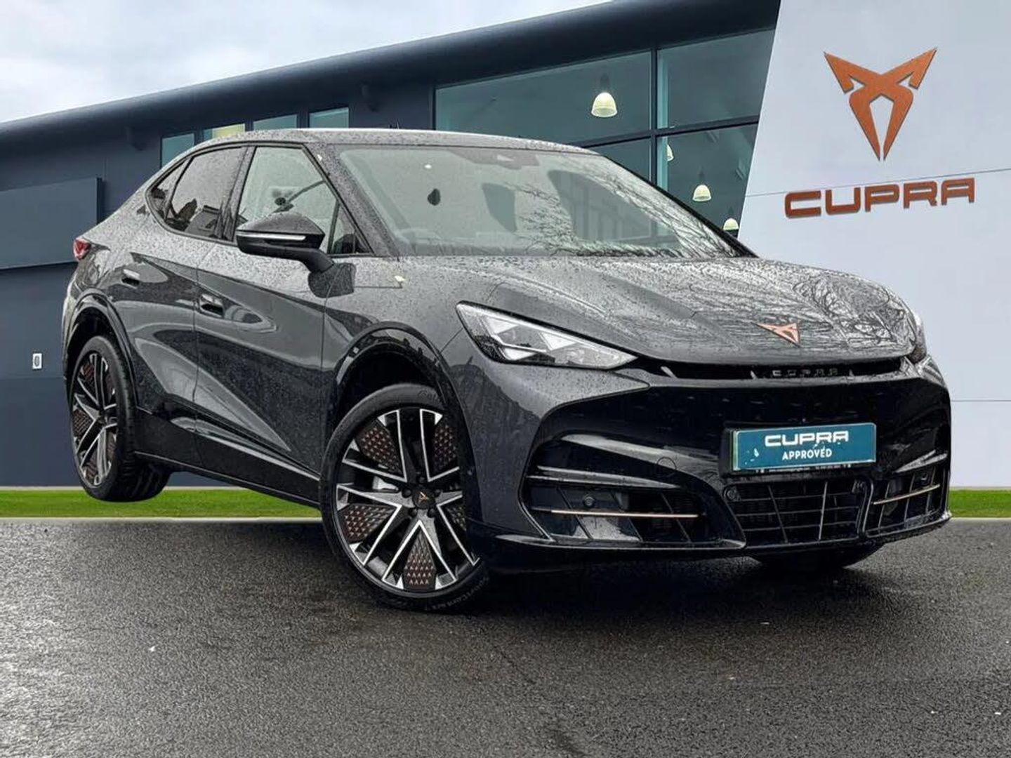 Dark tinted windows,Front and rear electric windows,Heated rear window,Rain and light sensors,Rear wiper,Dynamic chassis control Sport,Shock absorption in front,Sports rear shock absorption,Illuminated door handles,Panoramic sunroof,Rear side wing doors,Transport protection film,Front and rear illuminated CUPRA logos,Front light assist,LED daytime running lights,LED third brake light,Matrix LED headlights with Matrix Beam and signature,Rear 3D lights with ceremony,Welcome light with logo projector in door mirrors,ABS,ESC (Electronic Stability Control),Drive Profile Selection (Range,Comfort,Performance,CUPRA,Individual),Dynamic road sign display,Dynamic steering,Exit warning and assist,Forward collision warning,Intelligent park assist,Intelligent voice control powered by ChatGPT,Lane assist,Level 2 autonomous driving,Level 2 autonomous parking,PAS,Predictive adaptive cruise control with speed limiter,Rear traffic alert,Rear view camera,Remote park assist,Side assist,Top view camera,Traffic sign recognition,Trained park assist,Auto dimming interior rear view mirror,Electric adjustable/heated/folding door mirrors,3 point seatbelts in front with pretensioner/lap belt pretensioner and height adjustment,Active bonnet,Attention and drowsiness assist,Child locks on rear doors,Driver and front passenger airbags with front passenger airbag deactivation,side airbag in front with curtain airbag and front interaction airbag,Extended safety system (proactive passenger protection system,basic,front and rear),Pre crash system,Rollover assist,Tyre pressure monitoring system,Visual and acoustic seat belt reminder,Front + rear carpet mats,3 zone Climatronic air conditioning,Aluminium pedals,Centre console with armrest,Double floor in boot,Heated leather wrapped multi function steering wheel with satellite buttons,Leather upholstery,Rear armrest,Ambient lighting "Immersive",Illuminated door mouldings,Gear ratio 11,347 and 7,915,Sun visors with illuminated vanity mirrors,Bluetooth,Wireless full link smartphone integration,AM/FM and DAB radio,CUPRA interior sound,Sennheiser premium audio (12 speakers),Two front and two rear USB sockets,Car 2X function,Electric tailgate with virtual pedal + switch in driver door,Wireless charger,5.3" Digital Cockpit with 15" central display infotainment system,Augmented reality head up display,Emergency assist,Emergency call service,Emergency steering support with turn assist,Navigation system with media and CUPRA Connect with online services,Traffic jam assist,Travel assist,3 seat bench in 2nd row,CUP Bucket seats,Front and rear head restraints,Heated front seats,Power seat adjustment,lumbar support and memory function for drive and front passenger,Single front passenger seat,Ventilated front seats,Anti theft alarm system with interior monitoring,backup horn and towing protection,Keyless entry and go,Tow hook preparation,11 kW AC onboard charger,135kW DC charging capacity,6m Type 2 Mode 3 Charging Cable - 32 Amp/22kW,Anti-theft wheel bolts protection,Self sealing tyres,21" Etna forged alloy wheels with copper inserts and 255/40 R21 performance tyres,Tool kit