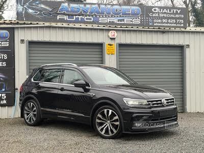 Active information display, Adaptive cruise control, Bluetooth phone integration system, Car-Net App-Connect, Distance control assist, Driver profile selection, Fatigue detection system, Instrument cluster, Lane assist, Low washer fluid warning light, Outside temperature display, Progressive power assisted steering, Service interval indicator, Speed limiter, Warning lights, 2 x USB sockets in front, Aux-in socket, DAB Digital radio, MP3 compatible single CD player, SD card slot, Auto dimming interior mirror, Automatic activation of hazard warning lights, Body colour door handles, Body colour door mirrors, Body colour rear spoiler, Body colour side skirt, Body coloured bumpers, Chrome side window surrounds, Chrome trimmed radiator grille, Coming/leaving home lighting function, Dusk sensor + auto driving lights, Elec heated + adjust door mirrors, Electric folding door mirrors, Electric panoramic sunroof with sunblind, Front and rear electric windows, Heated rear window, LED headlights with dynamic light assist daytime running lights and cornering front fog lights, LED rear lights, Piano black rear diffuser, R Line body kit, Rain sensor windscreen wipers, Rear windscreen washer and wiper with interval delay, Silver roof rails, Silver under body guard, Tinted windows (B pillar backwards), Windscreen wipers/ intermittent wipe + 4 position delay, 12V socket in centre console, 3 rear headrests, 3 zone climate control, 4 load lashing points, 40:20:40 split folding rear seats, Bag hook in luggage compartment, Black headlining, Driver + front passenger lumbar support, Foldable passenger seatback, Front + rear carpet mats, Front centre armrest with 12v socket, Front centre armrest with storage + rear 2 air vents + cupholders, Front seatback folding tables, Height/reach adjust steering wheel, Illuminated driver/passenger vanity mirrors, Illuminated scuff plates, Interior light with delay, Isofix Preparation 2 Rear child seats, Leather gear knob, Leather multifunction steering wheel, Load through provision with 2 cupholders when folded, Lockable cooled glovebox, Luggage compartment lighting, Luggage compartment side storage, Map pockets on front seats, Passenger seat height adjuster, Rear cupholders, Removable luggage cover, Sliding/reclining rear seats, Stainless steel pedals, Storage compartment in driver's door, Storage compartment in passenger's door, Storage compartment in rear doors, Storage tray on dashboard, Sunglasses storage, Variable boot floor, Ambient lighting pack - Tiguan, 3 rear 3 point seatbelts, ABS+EBD+Brake assist, Active bonnet, Active pedestrian safety system, Curtain airbags, Driver/Front Passenger airbags, Driver/Passenger whiplash optimised head restraints, Drivers knee airbag, DTC - Drag torque control, Electronic parking brake with auto hold, ESP with EDL + ASR, First aid kit, Front assist including city emergency braking, Front side airbags, Head airbag system, Height adjustable front 3 point seatbelts + pretensioners, Hill hold control, Passenger airbag deactivate switch, Passenger knee airbag, Pre crash system, Rear side airbags, Seatbelt warning lamp and buzzer, Two tone horn, Warning triangle, Alarm with interior protection, Electronic engine immobiliser, Remote central locking with 2 remote folding keys, Diesel particulate filter, XDS electronic differential lock, Aluminium decorative inserts, Chrome door trim inserts, 20" Suzuka alloy wheels + anti theft wheel bolts, Steel space saver spare wheel