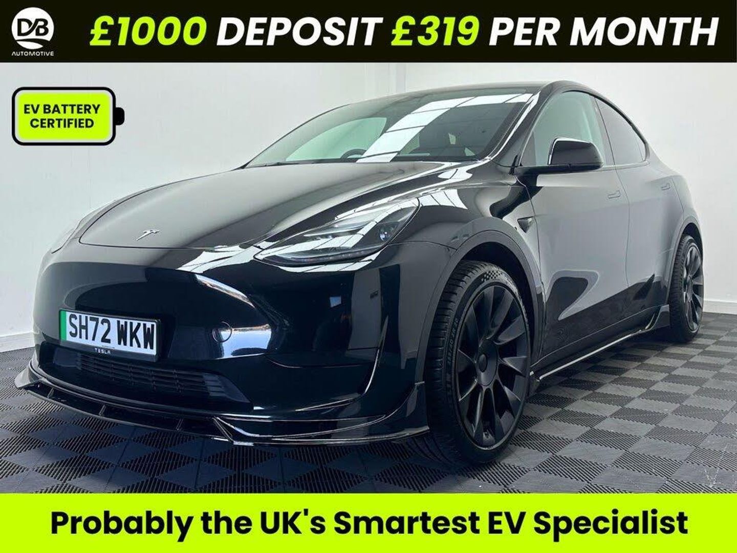 Reg: SH72 WKW Battery State of Health: Report Available VAT Qualifying: No Owners: 1 MOT: Minimum 6 months Date of Registration: December 2022 AMD Ryzen Keys: 2 Non Battery Warranty: Tesla Warranty valid until December 2026 or 50,000 miles (whichever comes first) Extended Warranty : DB Automotive can provide a full non battery warranty at a cost of £450 per year for up to 3 years which also includes wear and tear on suspension bushes up to 80,000 miles and covers suspension arms all through the cover. This cover allows you to go to any Tesla main dealer for work with the full labour rate included. For full infomation please get in touch. Battery Warranty - Valid With Tesla to 120,000 miles or 8 years whichever comes first RWD = 100,000 Miles Finance: HP/PCP Finance available from 8.9% Representative APR Optional Extras: Gloss Black Alloy Wheels /Callipers in the Colour of Your Choice KEY FEATURES: Styling Pack - Our flagship exterior and interior styling kit which sets this car apart. All parts are warranted for 12 months Panoramic Glass Roof with UV & Heat Protection – Floods the cabin with natural light while helping shield occupants from harmful UV rays and excess heat. Autopilot Assistance – Supports semi-autonomous driving to make journeys easier, safer, and more relaxing. Blind Spot Detection – Monitors surrounding traffic and warns you of vehicles you may not see when changing lanes. Heated Steering Wheel – Adds extra comfort on cold days, keeping your hands warm during winter driving. Built-In Dashcam – Records journeys to enhance security and provide valuable footage if needed. Keyless Entry & Start – Unlock, enter, and drive away effortlessly without taking the key out of your pocket. Heated Front & Rear Seats – Ensures all passengers stay comfortable during colder weather. Wireless Phone Charging – Easily charge compatible smartphones without the need for cables Software Upgrades Available From Tesla: Enhanced Autopilot Full Self Driving Capability Why DB Automotive? FCA Registered All Cars HPI and Salvage Checked 4.8 Rated on Google Established Since 2017 1000s of Happy Customers Call 01134871111 Appointment Only We Accept Outside Finance - £595 Arrangement Fee