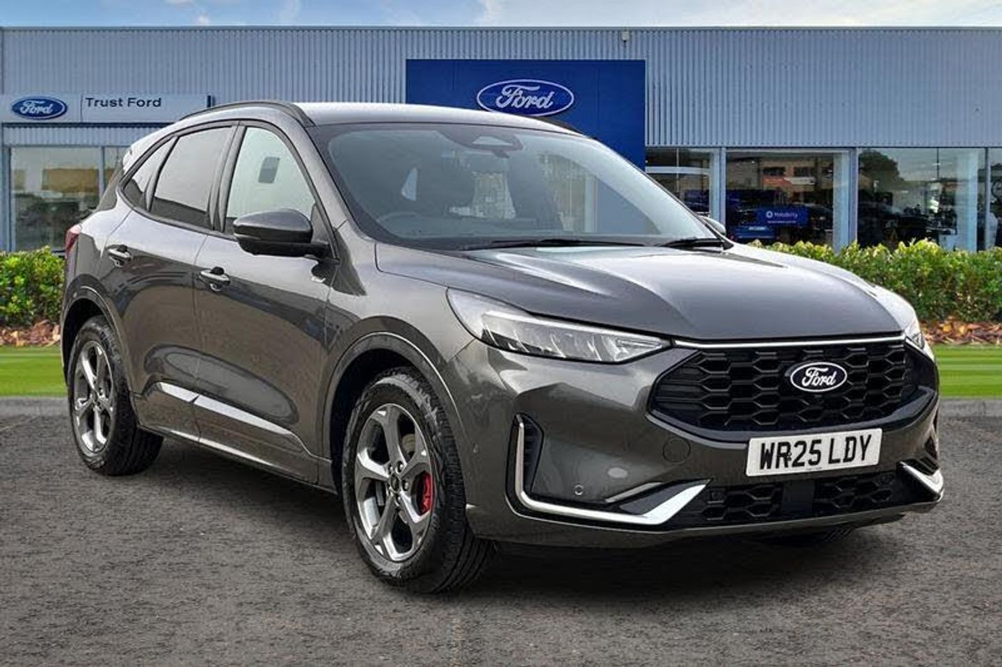 12.3 digital colour instrument cluster, 360 degree view camera, Clear exit assist, Cross traffic alert with active braking, e-Call (emergency call), Ford easy fuel, Ford SYNC 4 Navigation with 13 touchscreen, DAB radio, emergency assistance, Andriod Auto/Apple CarPlay, 5G modem & Ford Pass connect, Front and rear parking sensors, Hands free power tailgate, Lane centering assist, Lane keeping aid with lane departure warning, Power assist steering, Selectable drive modes, Service interval indicator, Auto headlamps with high and low beam, Black roof rails, Body colour bumpers, Front LED fog lamps, Large rear spoiler, LED daytime running lights, LED rear lights, LED third brake light, Pop out door edge protectors, Power front/rear windows with global close, Power heated folding door mirrors with puddle lights, memory function and camera, Quickclear heated windscreen, Rain sensing wipers, Rear privacy glass, Rear side wing doors, Rear wiper, ST-Line body styling kit, 2nd row sliding seats, Electronic automatic temperature control (EATC), Front and rear head restraints, Partial premium touch sensico upholstery, Rear centre head restraint, Single front passenger seat, Sports seats, 3x3 point rear seatbelts, Airbags - front driver/passenger, front and rear curtain, Drivers knee airbag, Dynamic brake support, Electronic stability control (ESC) and ABS, Evasive steering assist, Ford MyKey Gen 2 safety system, Manual child proof rear door locks, Pre collision assist with autonomous emergency braking, Rear seat Occupancy alert, Red brake calipers, Tyre pressure monitoring system