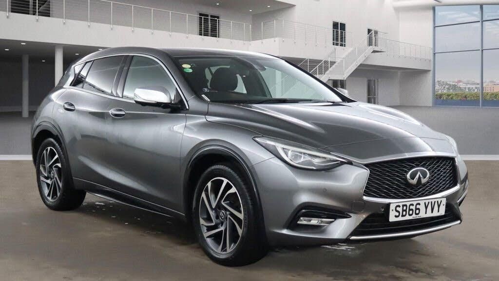 Graphite Shadow, 18in Alloy Wheels - 5 Double-Spoke Light Resurfaced, 4-Way Adjustment for Passenger Seat, 40-60 Split-Folding Rear Seat Back, 6 Speaker Sound System, 8-Way Adjustment for Driver Seat, ABS - Anti-Lock Braking System, AM-FM Audio System with Single CD Player, Adaptive Brake Assist, Adaptive Front-Lighting System - AFS, Airbags - Curtain Front, Airbags - Curtain Rear, Airbags - Driver, Airbags - Driver Knee, Airbags - Front Hip-Thorax Side, Airbags - Front Passenger, Aluminium Kick Plates with Purple Insert, Ambient Lights - LED, Around View Monitor with Moving Object Detection, Attraction Light, Auto Dimming Driver Door Mirror, Auto Dimming Rear View Mirror, Automatic Headlight Activation, Black Lacquer Interior Trim, Black Lacquer Roof-Side Spoiler, Bluetooth Audio Streaming with Phone Book Functionality, Body Coloured Exterior Door Handles, Climate Control - Dual Zone Automatic with Rear Vent Centre Console, Cruise Control, DAB Digital Radio, Dashboard - Alcantara Finisher, Door Mirrors - Heated and Electrically Folding, Door Mirrors - LED Turning Signal, Door Mirrors - Satin Silver, Drivers Power Lumbar Support, Dual Rectangular Chrome Exhaust Finishers, EBD - Electronic Brakeforce Distrubution, Electronic Parking Brake, Electronic Stability Programme, Fog Lights - Black Lacquer Finishers, Forward Collision Warning and Stop, Front Centre Armrest, Front Fog Lights - LED, Front Passenger Footwell Net, Front and Rear One Touch Up and Down Electric Windows, Headlights - Auto Levelling, Headlights - LED, Heated Front Seats, Heated Windscreen Washer Jets, Hill Start Assist, ISOFIX Seat Mounting Points in the Rear, Immobiliser, Infiniti InTouch, Infiniti InTouch - Navigation System, Key Fob - Purple Insert, Keyless Entry System, LDW - Lane Departure Warning, LED Daytime Running Lights, Leather Gear Shift Lever, Multifunction Steering Wheel, Parking Assistance - Automatic, Parking Sensors - Display, Parking Sensors - Front, Pollen Filter, Privacy Glass for Rear Side and Tailgate, Puddle Lamps on Door Mirrors, Rain Sensing Wipers, Reach and Rake Adjustment for Steering Column, Rear Lights - LED, Rear Parking Sensors, Rear View Camera, Satin Chrome Window Trim, Side Sills - Black Lacquer, Smart Beam - Auto High-Low Beam, Speed Limiter, Speed Sensitive Power Steering Assistance, Steering Wheel - Leather, TCS - Traction Control System, Tech Pack, Touch Screen Infotainment System - LCD VGA 7, Traffic Sign Recognition, Tyre Pressure Monitor System - TPMS - Warning, Tyre Repair Kit, USB Port with Smartphone Connectivity, USB Port with iPod Connectivity, Ultrasonic Alarm System, Voice Recognition System, Wheel Arch Mouldings - Black Lacquer