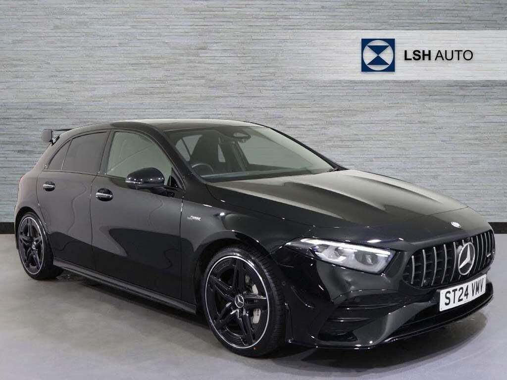 This 2024 Mercedes-Benz A35h AMG (Premium Plus) is a Mercedes-Benz manufacturer approved vehicle with a full dealership service history, having had its last service on 2025-06-04 at 11,271 miles. This Euro 6 compliant, four wheel drive model boasts a 2.0L petrol hybrid engine and comes with 24 months warranty, with its MOT valid until June 2027. It has had only one owner and features include wireless charging, heated front seats, and dual Bluetooth interfaces, all presented within a spacious boot.The Mercedes-Benz A35h AMG stands out with its impressive 0-62mph acceleration in just 4.7 seconds, demonstrating superior performance compared to similar vehicles. This Premium Plus variant offers a refined driving experience, enhanced by its advanced hybrid technology and the assurance of manufacturer approval and comprehensive service records.-SUNROOF PREMIUM PLUS AMG-Mercedes-Benz A Class A35 4Matic Premium Plus 5dr Auto-LSH Auto UK Ltd - An LSH Group Company. The Worlds Largest Retailer of Mercedes-Benz Passenger Cars