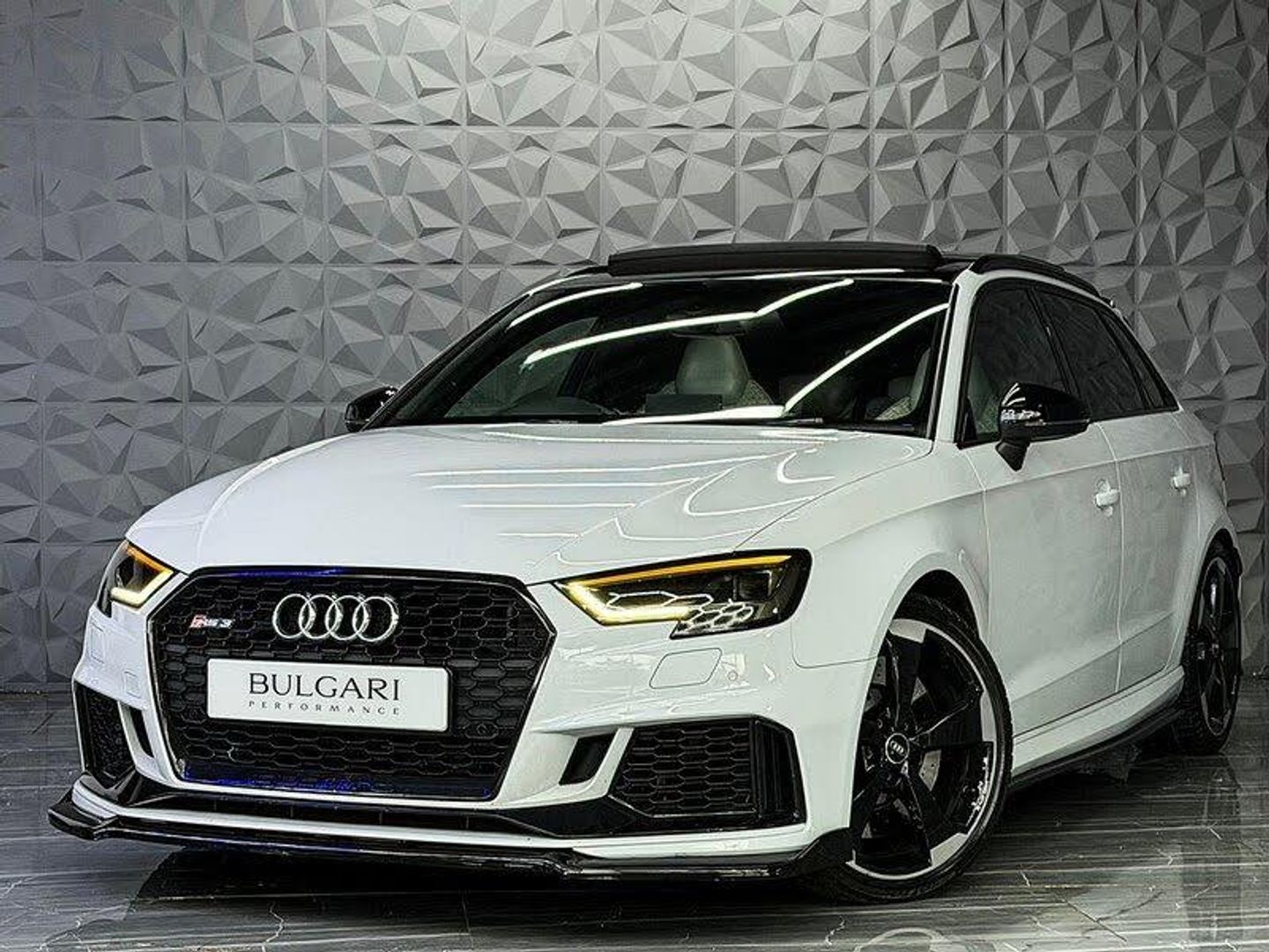 19in Alloy Wheels - 5-Arm Rotor Design - Gloss Anthracite Black - Diamond Cut Finish,Brake Calipers Painted in Red with RS Logo at the Front,Comfort and Sound Package,Door Mirrors - Heated-Electrically Adjustable-Folding-Auto-Dimming,Fine Nappa Leather with Diamond Quilting - RS Super Sports Seats - Lunar Silver/Granite Grey Stitching RS3 Logo,Glacier White,Inlays - Carbon,Matrix LED Headlights with LED Rear Lights and Dynamic Front and Rear Indicators,Panoramic Glass Sunroof,Privacy Glass,Rear-View Camera,Styling Package - High-Gloss Black,Top Speed Restriction Increase to 174mph,Tyre Pressure Monitoring System, 2 x USB Charging Ports and 1 x AUX-IN, Audi Connect Infotainment Services (36 Month Subscription From New), Audi Smartphone Interface, Audi Sound System, Bluetooth Interface, CD Drive, DAB Digital Radio, MMI Navigation Plus including MMI Touch, Audi Drive Select, Audi Parking System Plus, Cruise Control, Tyre Pressure Warning Light, Voice Control, 19in Alloy Wheels - 5-Arm Rotor Design, Anti Theft Locking Wheel Bolts, Brake Calipers Painted in Black with RS Logo at the Front, Door Mirrors - Electrically Adjustable and Heated with Integrated LED Side Indicators, Electric Windows - Front and Rear, Matt Aluminium Look Door Mirrors, Matt Aluminium Look Window Trims, RS Body Styling, RS Dual-branch Exhaust System with Two Oval Tailpipe Trims, RS Roof Edge Spoiler, RS3 Badge on Grille and on Luggage Compartment Lid, Tyre Repair Kit, Audi Beam, Headlights Washers, LED Headlights with LED Rear Lights and Dynamic Rear Indicators, Aluminium Interior Elements, Audi Virtual Cockpit with RS Specific Display, Auto-Dimming Rear-View Mirror with Light and Rain Sensor, Dual-Zone Electronic Climate Control, Front and Rear Floor Mats, Front Centre Armrest, Heated Front Seats, Illuminated Door Sill Trims with RS Logo, Inlays - Optic 3D Design - Titanium Grey, Interior Light Package, Manual Seat Adjustment, Pedals - Brushed Stainless Steel, RS Flat Bottomed 3 Spoke Leather Multi-function Sport Steering Wheel with Alcantara Inserts and Gear Shift Paddles in Aluminium Look - Contrast Stitching and RS Badging, RS Gear Lever Knob in Alcantara with Leather Gaiter with Contrast Stitching, Seats - Split Folding Rear - 60-40, Storage Package, Tool Kit and Car Jack, Progressive Steering, RS Sports Suspension, 6-Airbag System with Knee Airbag for Driver, Anti-Theft Alarm, Audi Hill Hold Assist, Electromechanical Parking Brake, ESC - Electronic Stabilisation Control inc ABS - ASR and EDL, First Aid Kit and Warning Triangle, ISOFIX Child Seat Mounting and Top Tether, Remote Central Locking with 2 Fold Away Keys, RS Brake System, Seat Belt Monitoring